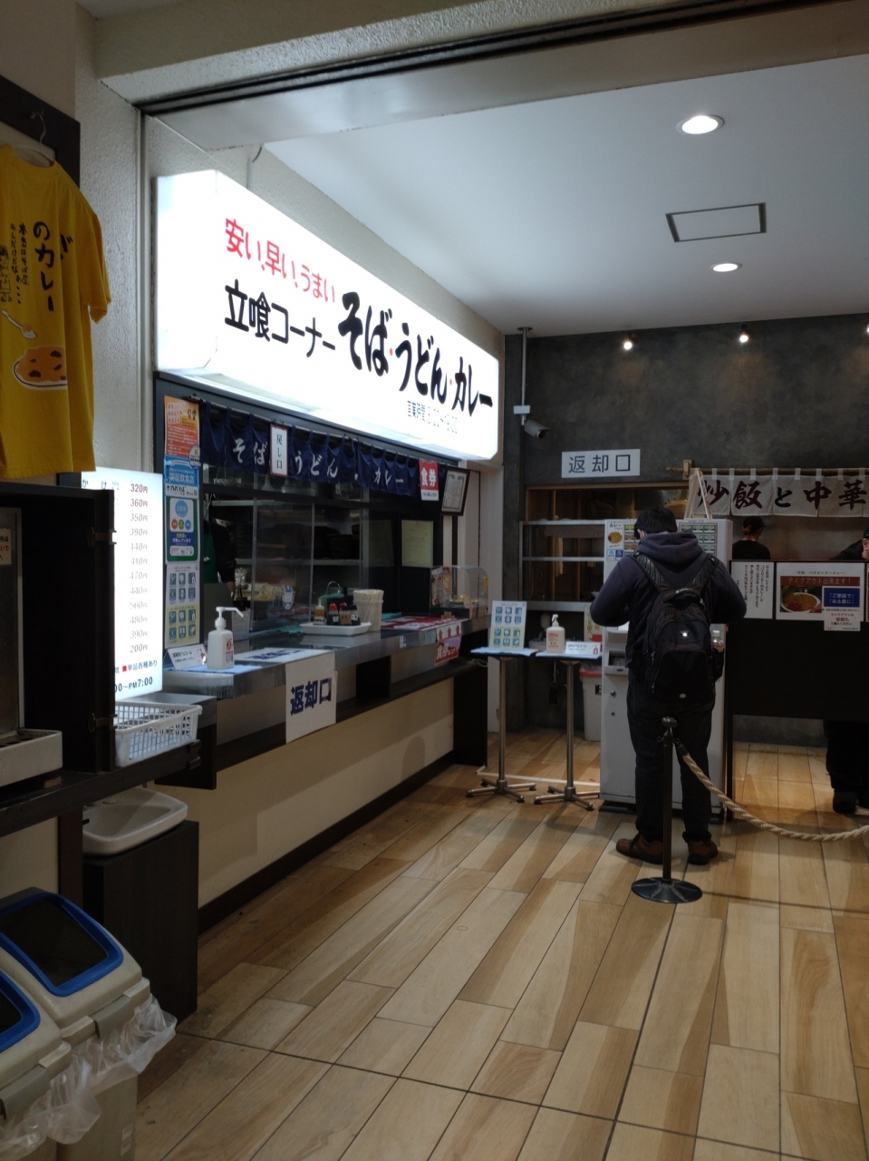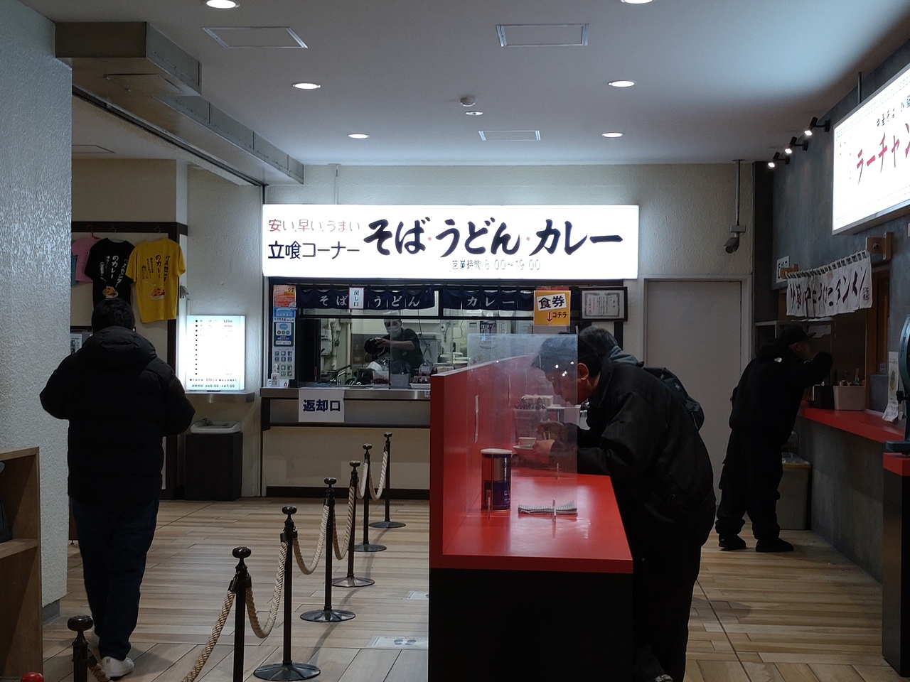 新潟市の中心部、万代シテイバスセンターにあるスタンドそば店。バスターミナルのビルのオーナーの新潟交通の子会社であるシルバーホテルが運営している本格的なもので、1973年創業。2020年、ビルの耐震工事のため一時的にシルバーホテル内に移転していましたが、工事終了後、元の場所に復活。立ち食いそば店ではあるものの一番人気は「バスセンターカレー」こと、黄色いカレーライス。以前から新潟県民なら誰でも知っているご当地グルメの一つでしたが、読売テレビ「秘密のケンミンショー」やテレビ朝日「アメトーク」などで紹介されて以来、全国区となり朝8時の開店直後から地元客に加えて観光客も多く訪れるお店となっています。