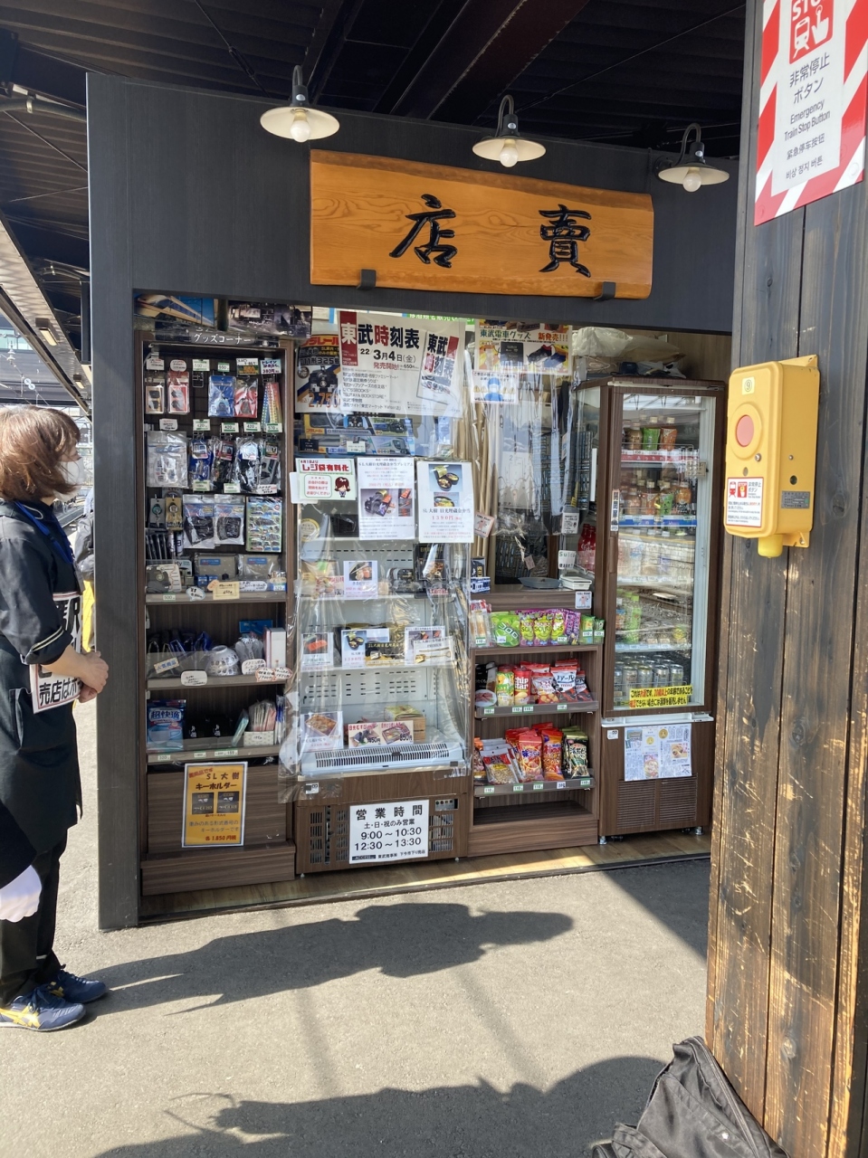 東武日光線・鬼怒川線下今市駅の下りホームにある昭和レトロな売店。SL大樹の運転開始に合わせて2017年8月にオープンしたお店で、SL大樹弁当やグッズ、お菓子やシューズ、ビールなどを販売。