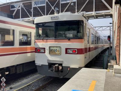 車両は、50年前に製造された急行型車両1800系を改造した350形で、車体はスペーシアと同じジャスミンホワイトを基調としたパープルルビーレッドとサニーコーラルオレンジの帯を巻いたものでしたが、車内座席は全てリクライニング機能がない回転クロスシートではあるもののフットレストを備え、背面に折り畳み式テーブルと窓の下に細長いテーブルが折り込まれていたもので、昭和を感じさせる一世代前の仕様でした。このためスペーシアやリバティよりもサービス差があるため、特急料金が200~400円程度安く設定されており、比較的空いていたのでお得な列車とも言えました。