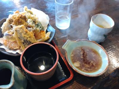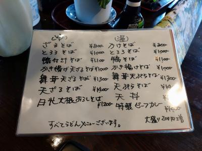 東武日光線・野岩鉄道新藤原駅から徒歩5分弱。国道121号線沿いにある蕎麦屋。お店は、外観とは少しギャップがあり、天井が高く、古民家風。新藤原駅は周辺はコンビニもなく、お店も少ないところ。国道をウロウロしていたらこのお店を発見。電車の発車時刻が迫っていたので、間に合うかを確認して「舞茸天ざる」を注文。待つこと10分くらい、舞茸天ざるは、思った以上のボリューム。舞茸天ぷらだけではなく、野菜の天麩羅も山盛りに。食べきれるかと心配になりながらも、そばつゆとは別の天つゆでいただく。サクサクしていて美味。肝心の蕎麦は、ザルではなく器に盛られている。これもお店のこだわりのよう。北海道の粉と日光のお水で、毎日手打ちされた蕎麦は、少し短目の乱切りですが、喉越しが良い。そばつゆもちょうどよい辛さ。結局、10分くらいで、食べなければならなかったため、味わうのも忘れで高速で食べたものの。なかなか減らない天ぷらとそばに格闘。食べ終わりチェックを頼むと、コーヒー飲んでって、とサービス。今度はゆっくり行きたいと思ったお蕎麦屋さんです。ごちそうさまでした。