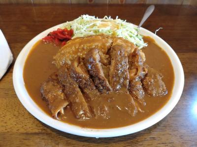 カレーは創業当時からの定番メニューだそうで、盛りが良いことと、辛さの中に甘さがあることが特徴。作り方は創業当時から変えておらず、甘さはフルーツを隠し味にしているからとのことです。辛さはA~Zまであり、Aが家庭の辛口クラスで、Zは激辛好きでもなかなかのレベルのよう。甘口を頼めば、甘口にしてくれます。今回は、カツカレーのBを注文。型抜きされたご飯に、柔らかい揚げたてのカツが乗っていて、これで普通盛り?と思ってしまうくらいのボリューム。大盛りの量が心配になる。カレーはBでもそれなりの辛さ。フルーツの甘さで少しまろやかでもあり、味は整っている。また、付け合せのキャベツのおかげで辛さが紛れます。カツも衣とがサクサクしていてお肉は柔らかい。漫画本も置いてあって、珈琲を飲みながらゆっくりできそうなお店でした。- 旅行時期