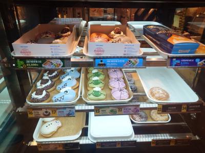 明洞のロッテ百貨店ソウル本店の地下1階にある、アメリカ発のドーナツチェーン店。韓国には、日本上陸よりも二年後早く上陸。以前は、明洞にもありましたが、現地は閉店してしまったので、明洞エリアではここ小公(ソゴン)店のみ。日本と同様韓国でもドーナツは人気で、看板メニューはオリジナル・グレーズドドーナツ。メニュー数は日本と変わらないと思いますが、韓国独自メニューもあるとのこと(詳細はよくわからない)。喫茶併設なので、買い物休憩に利用する方も多く、特に午後は混雑している印象です。