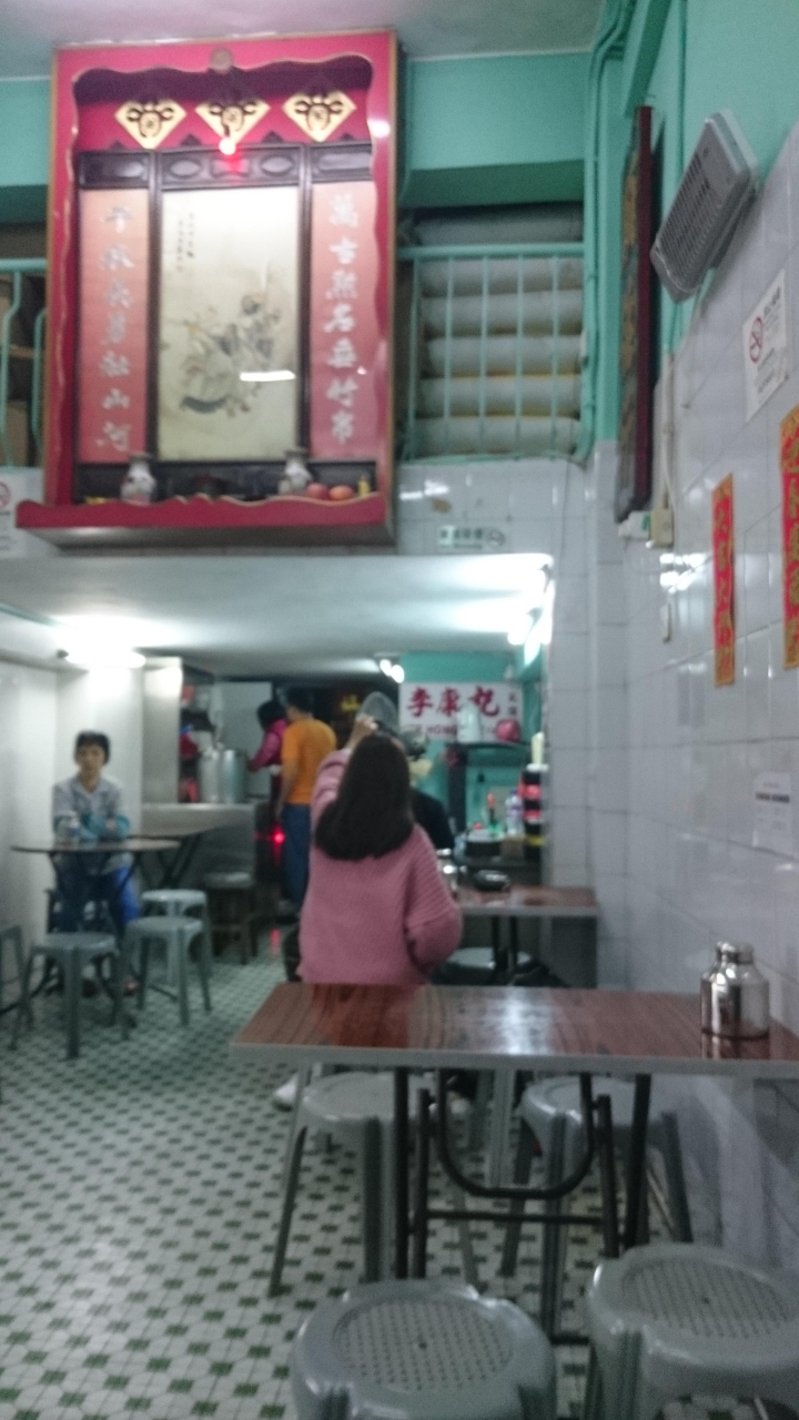 マカオではあまりない豆腐花の専門店。仏像彫刻のお店が立ち並ぶ細い道にあり、ガイドブックがないと観光客では行くのは難しいかも。店頭のケースには豆腐花が並んでいて、テーブルに着くとすぐに豆腐花が運ばれてきました。コンデンスミルクをかけてくれて、お好みで、甘いシロップをかけます。甘みは大豆の味を邪魔せず、喉越しがとても良いです。大が14パタカ、小が7パタカとリーズナブルです。