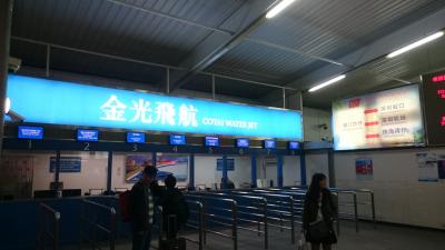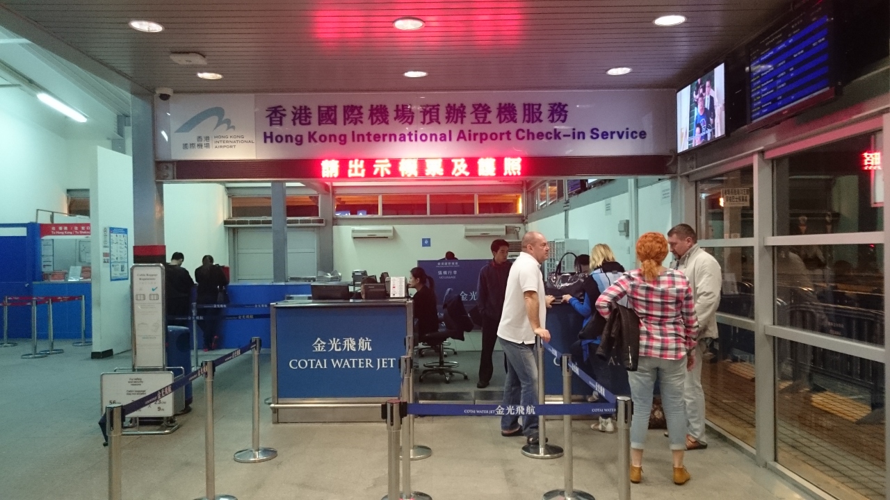 タイパ地区にあるフェリーターミナルで、ベネチアンが開業した時にできたそうです。マカオ空港の隣で、飛行機の離発着の音がロビーでもよく聞こえます。正式名称の通り、「臨時」ターミナルで、ロビー内にはチケット売場とチェックインカウンターのみ。「候船室」と呼ばれる待合室にも1台のジュースの自動販売機があるのみです。ただ、タイパのサンズを始めタイパ地区に宿泊の場合、タクシーで5~10分くらいなので、外港を使うより便利。また、空いています。また、香港の上環やマカオの外港で乗降船するよりも揺れが少ない気がしました。なお、香港空港行きを利用する場合、外港経由でも同様ですが、JALやキャセイなどの利用客(ANAは対応していない)、こちらでチェックインと荷物を預けられること、香港には入国しないので香港の出国税120ドルが返還されること、香港市内での乗り換えが不要なことなどのメリットがあります。