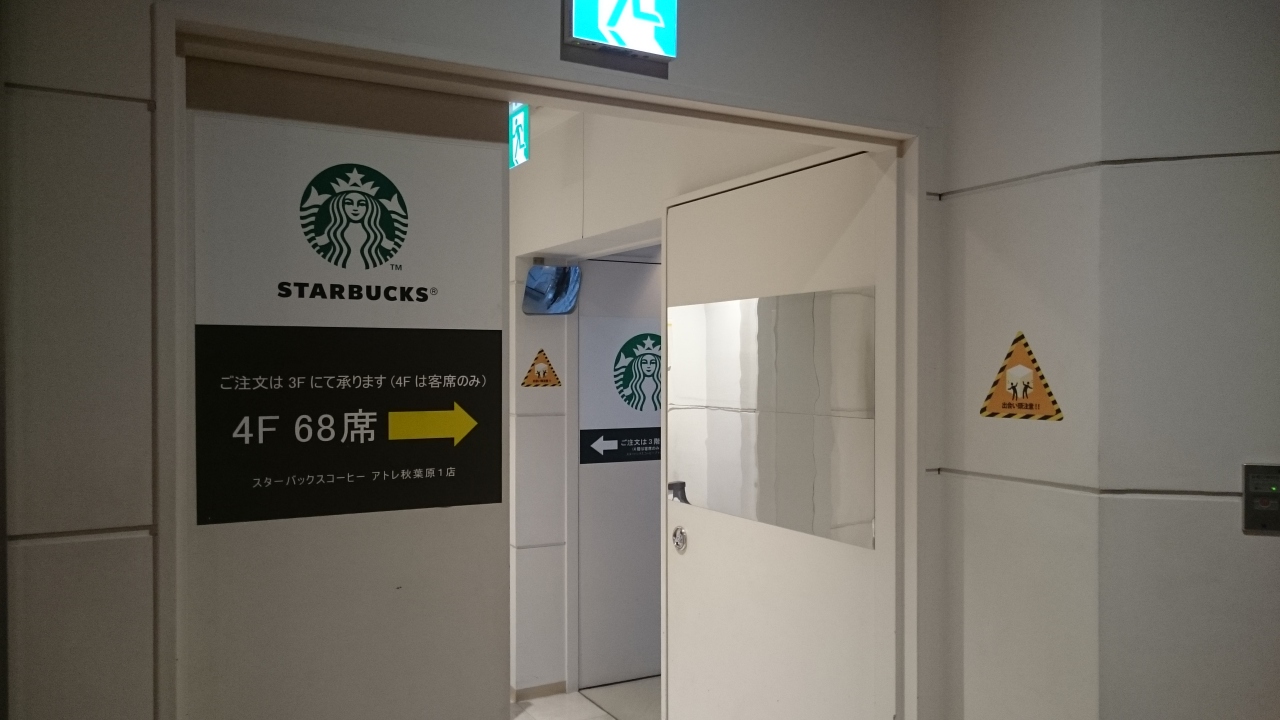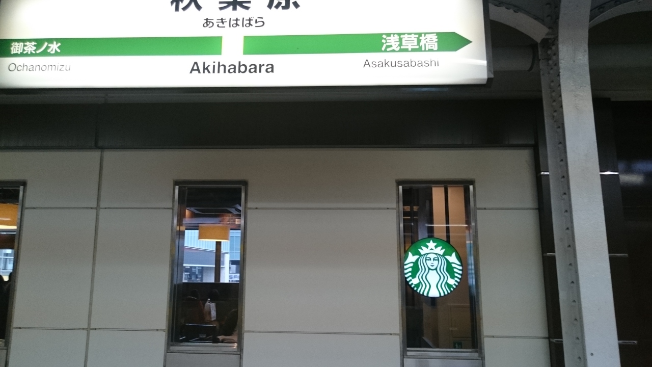 秋葉原のアトレ3階にあるスターバックスコーヒーで、アトレ改札口近くにあります。3階と4階にあり、注文は3階で。4階は68席ありますが、結論混雑。総武線千葉方面のホームを眺めることができます。