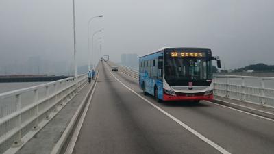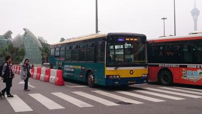 電車や地下鉄のないマカオ(新交通システムを建設中ですが、いつ完成することやら)では、バスかタクシーが、観光客、地元の方問わず貴重な交通手段。道が狭く、一方通行の多いまかおでは、日本では考えられないくらい細い道でも、大型バスが走り回っています。運賃は、距離制ですが、3.2パタカ~、お釣りは出ません。前乗り、前払い方式で、ブザーを押して降りるのも日本と同じ。車内放送は、広東語→ポルトガル語→北京語→英語の順で案内されます。停留所には、英語入りの路線図もあるので、観光客が使いづらいということはないと思います。