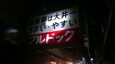 JR大井町駅東口から徒歩数分。細い飲食店街の間にあるお店。お店のなかは、カウンターとくの字に曲がったテーブル席。宴会もOKのようで2階もあります。かなり古いお店ですが、清掃は行き届いています。お店にはたくさんのタレントの写真やサインがはってあります。ハンバーグかメンチで迷いましたが、やはり名物のメンチに決定。定食にはご飯と味噌汁、お新香がつきます。大盛りの有名店だけあって量も半端ではないです。山盛りのキャベツの上に盛られたメンチはデカいだけでなく、肉汁豊富で美味です。サラダ油であげており、衣はからっとしています。夜はおかすをつまみに飲んでいる人も結構多く、ビールやワインもでていました。近くで食べていた人のナポリタンもすごい量でした。
