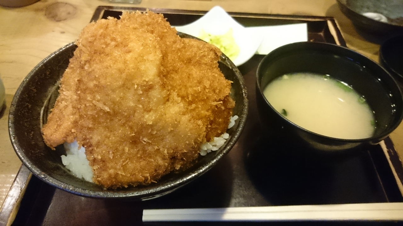 店名は「神保町本店」ですが、住所は西神田で、場所もJR水道橋駅からのほうが近い。白山通りから三崎町交差点を入り、日本大学法学部2号館を左に曲がるとすぐ。研数学館のビルの斜めにあります。新潟発祥のタレカツは、タレが染み込んだ薄めのカツがご飯の上にのったかつ丼。福井や駒ヶ根のソースかつ丼に似ています。タレは醤油ベースの甘めのもの。カツは薄めの衣で、その場で揚げられたもの。サクサク感が残りご飯とマッチします。せっかくなので「二段盛り」にしましたが、カツが6つも入っていて、大盛りにしなくてもかなりのボリューム。ご飯のふたが閉まらない大きさで、ご飯の上に4つのカツがのっていて、さらにご飯の下にカツが2枚、入っていました。付け合せに甘酢生姜が食べ放題で、脂っぽい口の中をさっぱりさせるので、いい箸休めになりました。お店はカウンターのみです。