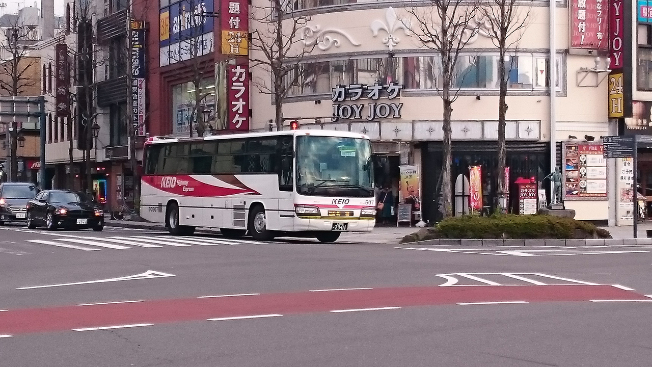 新宿を起点に中央高速を走る高速バス。「中央高速バス」という名称は京王電鉄バスが登録商標を有しているそうです。松本~新宿線に乗車しましたが、通常3時間半弱なので、渋滞さえしなければ、特急あずさ号よりも運賃が安く、快適と言えます。特に1000円プラスで乗ることができるSクラスシートは、JALのクラスJのようなシートで、シートピッチが広く、膝掛けやスリッパ、電源コンセントがあり快適でした。増便は不明ですが、京王、アルピコ交通便ともにWi-Fi完備、トイレつきのハスです。