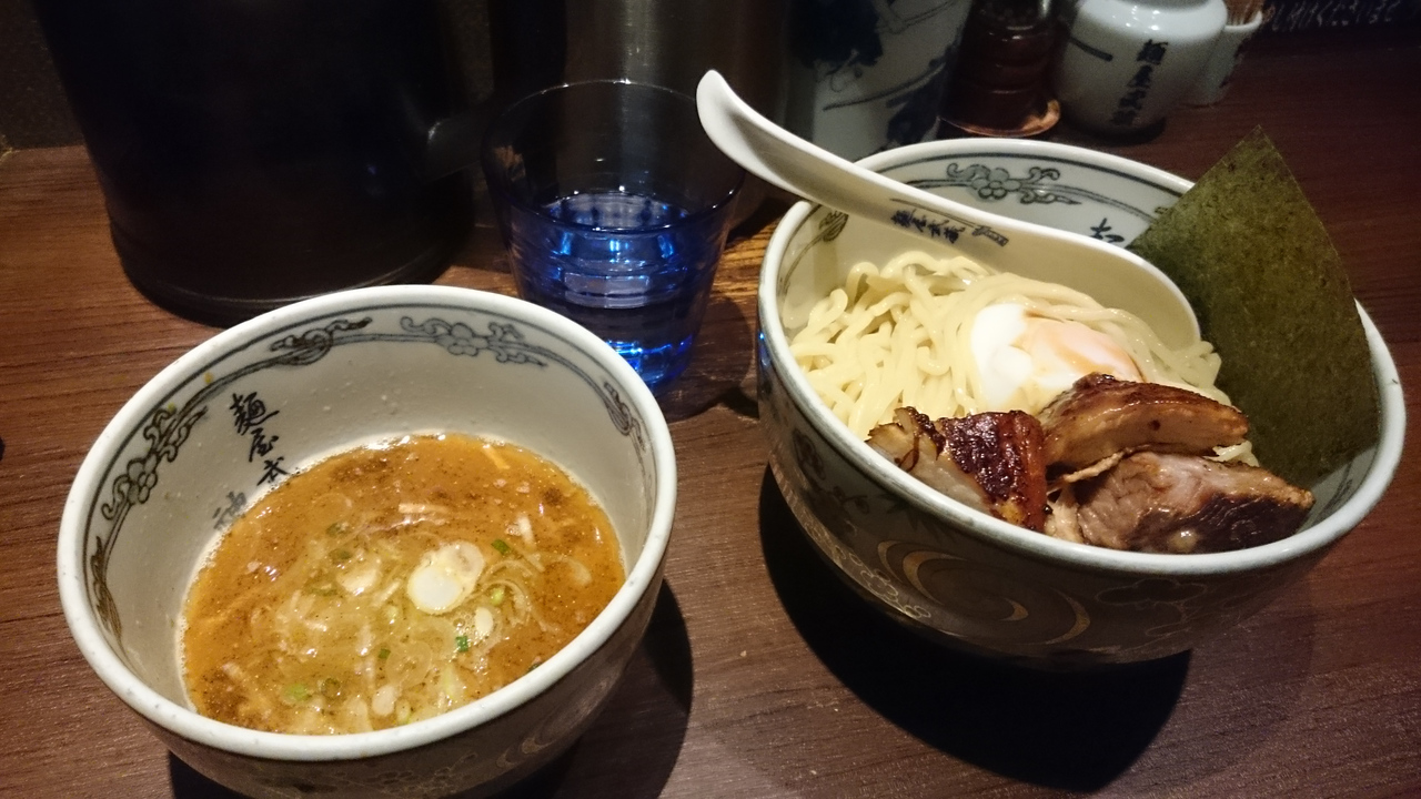 新宿の青梅街道沿いにある赤い看板のお店。店内は、外から見るよりも近代的できれいです。1階はカウンター中心?2階はテーブル席です。つけ麺やラーメン、排骨丼やチャーハン、餃子など、一通りのメニューがありますが、つけ麺600円、餃子300円などコスパがよいです。つけ麺は大盛りの場合かなりのボリューム。麺は中太で、つけ汁は魚介系の和風で、あっさりしています。もう少し熱い方が嬉しい。餃子はカウンターの目の前で焼いています。モチモチの皮に肉汁たっぷりの餡で美味なのですが、焼きがもう少しあった方がいいかも。次回は丼ものを食べてみたいです。
