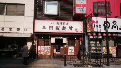 最近、店舗を急拡大している三田製麺所のJR御茶ノ水駅聖橋口改札横にあるお店。1階と2階があり、1階はカウンターのみ10席。2階はテーブル中心。昼時は並びますが、回転は早いほうです。メニューは他店と変わらず、つけ麺と辛つけ麺がメインで、麺の量は並(200g)、中(300j)、大(400g)、特盛(500g)で、中と大の価格は変わらない。大は結構な量。麺はモチモチしている小麦色で、うどん並みの太さ。つけダレは漁粉入りの濃厚なもので、チャーシューとシナチクがゴロゴロしています。