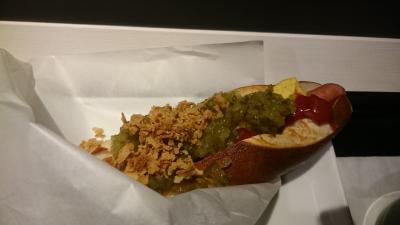五反田駅西口から徒歩数分。桜田通り沿いのカフェ。お店は黒に統一されたおしゃれな感じです。お店の「G」は五反田のGでチェーン店ではないようです。コーヒーは、ブレンドを頼みましたが、クセがなく普通のコーヒーでしたが、ブラックでも飲みやすかったです。このお店にひかれたのは、「ラウゲンドッグ」という、ドイツのビールのおつまみとして有名なプレッツェルの生地を使ったパンで挟んだホットドック。普通のホットドックに比べて、フランスパンほどではないですが、パンに食感があって、食べ応えがあります。お昼ご飯も少食ならこれ一本でいけそうな感じ。ソーセージもパリッとしていて美味でした。カフェのホットドックとしてはかなりのレベルだと思います。コンセントも結構あり、スマホの充電にも便利なようになっています。ちょうど、ピクルスとフライオニオン入れ放題のキャンペーン中でした。
