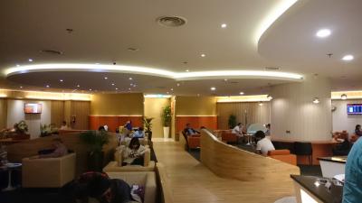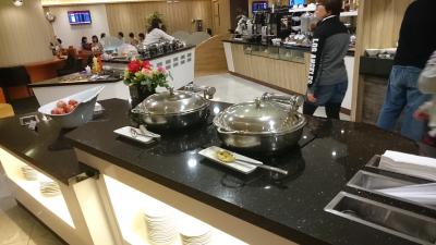 出国審査を出て免税店の左にあるエスカレーターに乗り、降りたところにあるラウンジ。JALの上級会員のほか定型航空会社乗客のほか、ダイナースカードもしくはプライオリティパスでの利用も可能です。部屋は奥に広くゆったりしており、奥の一部はJAL会員の場合、ダイヤモンドかプレミアのみの利用できます。また奥には、半個室のようなビジネススペースがあり、コンセントも準備。日本の携帯電話の充電器は、コンセント変換器を使用せずそのまま使えました。(電圧はシンガポール仕様です)日経や朝日などの日本の新聞も置いてあるので、時間つぶしには便利。食事も日本のJALラウンジのレベルまではいきませんが、セルフで茹でるヌードルや焼きそばなどもあって味も普通レベルでした。