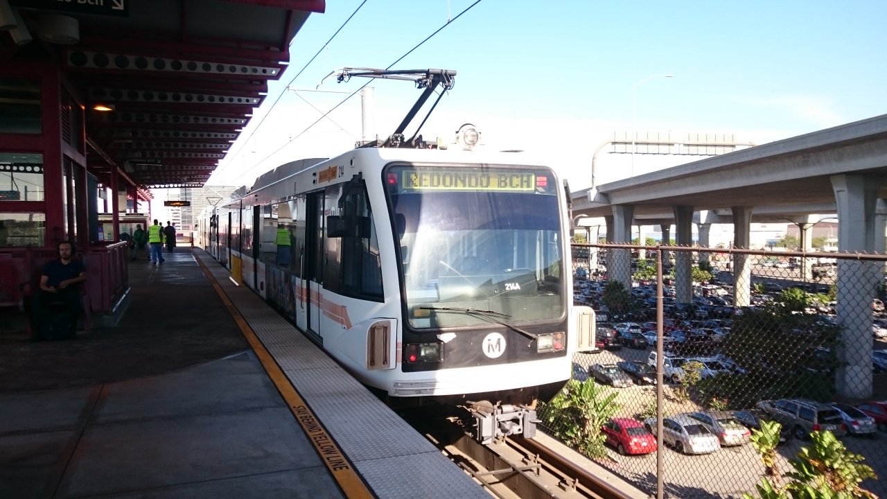 車社会のアメリカ、特にロサンゼルスはその傾向が顕著で、空港アクセスにもその傾向があります。自動車に乗れない人がメトロを使うという構図なので、特にグリーンラインやブルーラインは、雰囲気が悪く、荷物も注意した方がよいです。電車の中で寝るとかは避けた方がいいでしょう。ただ、ロサンゼルスから市内へ公共機関を使って移動する場合でもっとも安いルートになります。ロスの交通の要所であるユニオン駅に行く場合は、空港から無料シャトルバス「Gシャトル」に乗り、メトロのグリーンラインのエビエーション駅でアウォーク行きの電車に乗り、さらにインペリアル/ウィリントン駅でブルーラインの北行き(メトロセンターL.A.ダウンタウン)に乗り換えます。所要時間は約1時間。メトロの駅での改札はありませんが、乗換出口なので検札があるので、切符は必ず買いましょう。