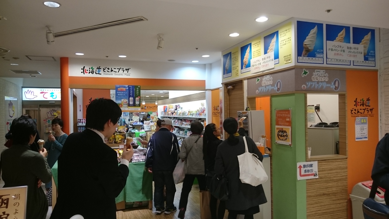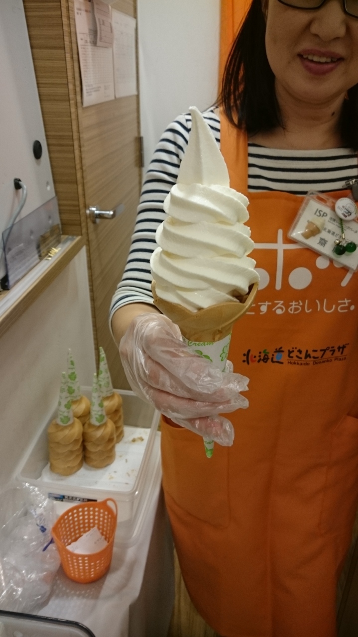 池袋のISPにある北海道のサテライトショップ。北海道のお土産物(ロイズや道内販売にこだわる白い恋人などの石屋製菓関係はない)やサッポロクラッシック、雪印のカツゲン、サッポロビールのリボンシトロンやガラナをはじめ北海道限定商品が購入できます。オススメは、江別のトンデンファームのソフトクリームで、バニラとメロン(パンプキンの時期あり)、ミックスから選択。バニラは360円と少々高めですが、乳製品99.6%という濃い味で、ミルクの味がしっかりする美味です。