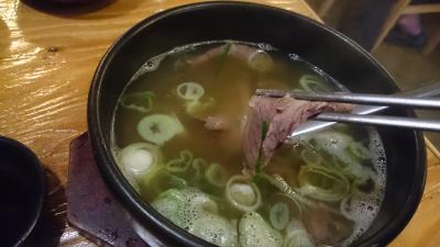 地下鉄1号線、6号線の東廟前駅4番出口からすぐの24時間営業のコムタンのお店。グツグツ煮ている状態で提供されるコムタンはスライスされた牛肉が、これでもかというくらい入っていて、タレ(酢醤油っぽい酸味のあるもので辛くない)につけても、そのまま食べても美味しい。スープは、韓国特有の自分で味付けをして行くタイプのものですが、ソルロンタンとは違い透き通っており、コクもあるので塩味を少し足しただけでちょうど良い味でした。ご飯と一緒に食べると、牛肉スープ雑炊になり、これまた格別です。辛くないので、辛いものが苦手な人にも安心です。参鶏湯やジャントクッパ、鍋もあり、朝から飲んでいるお客さんも結構いました。コムタン8000wも納得です。
