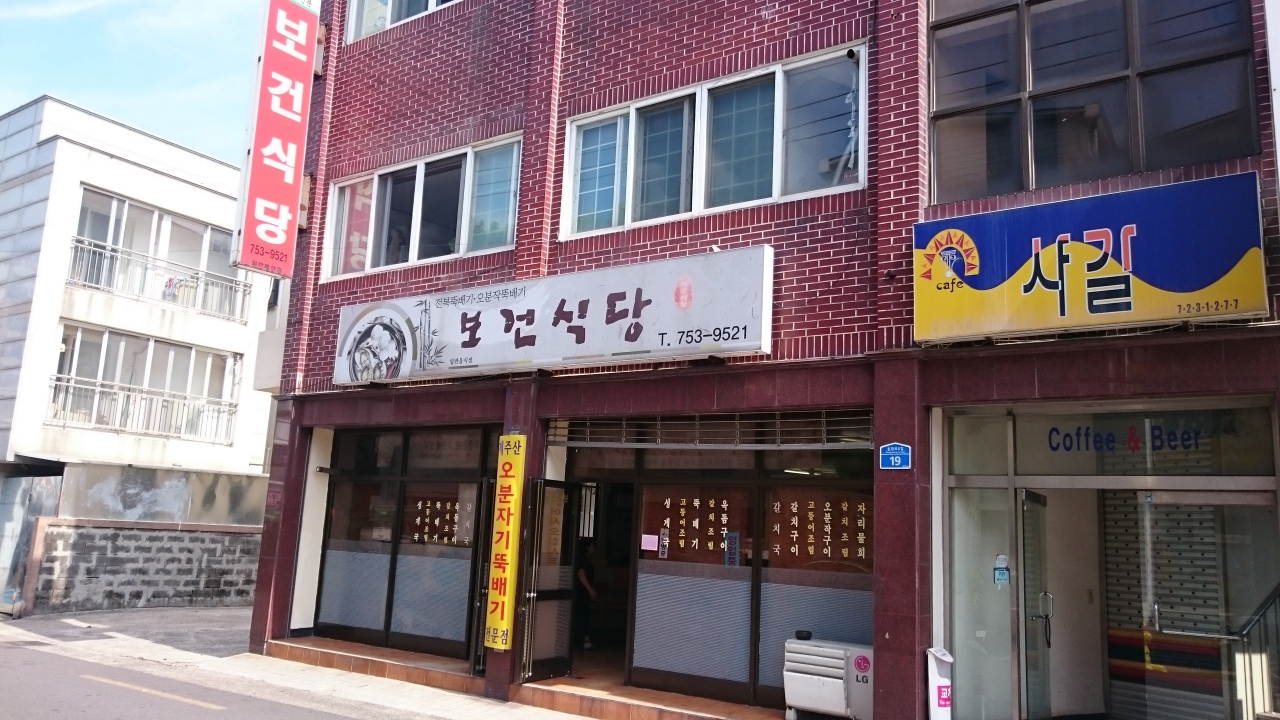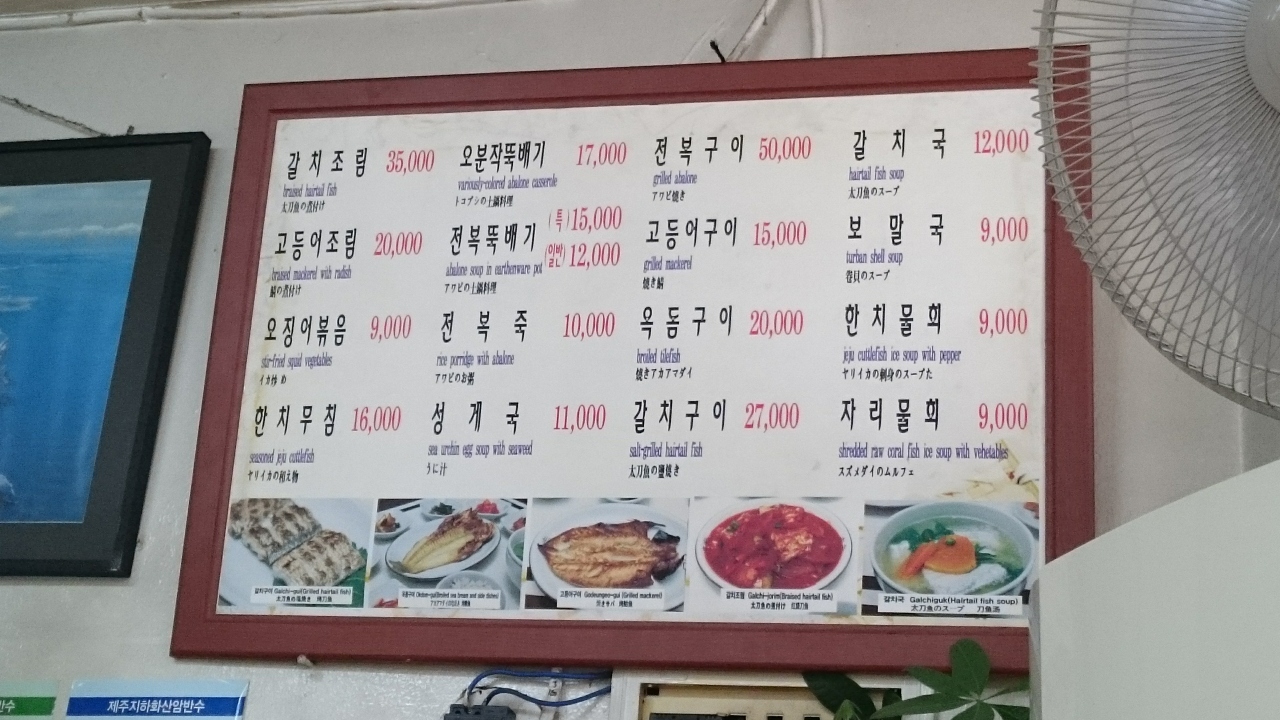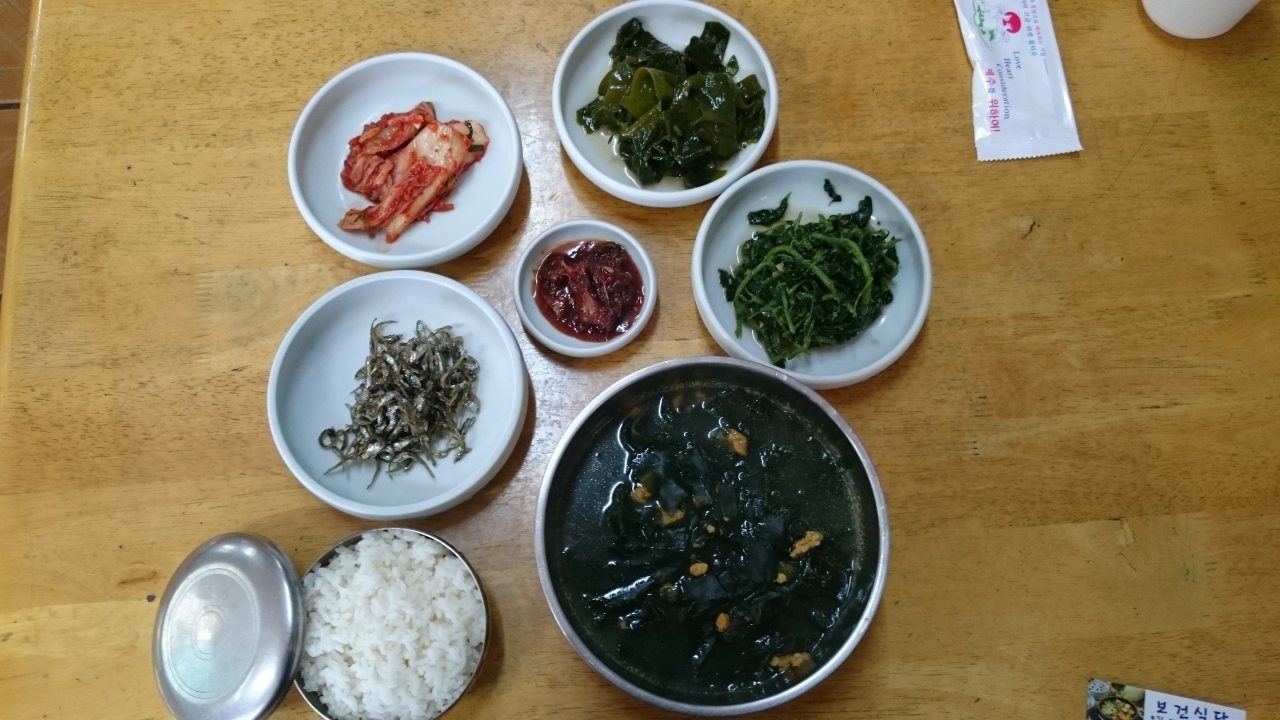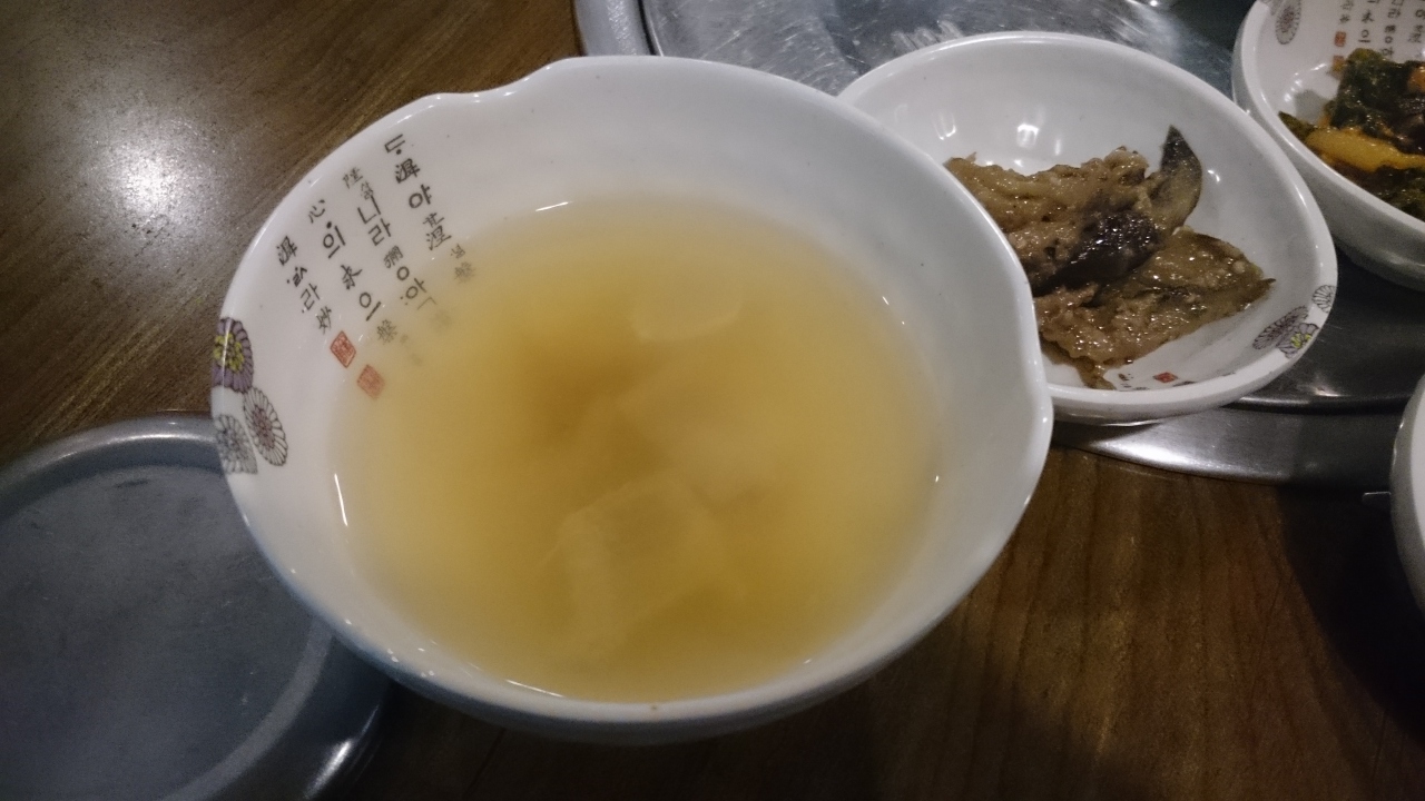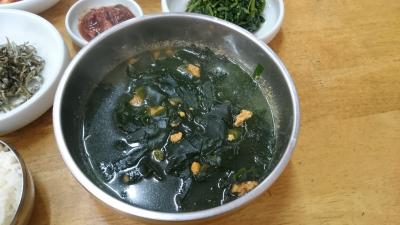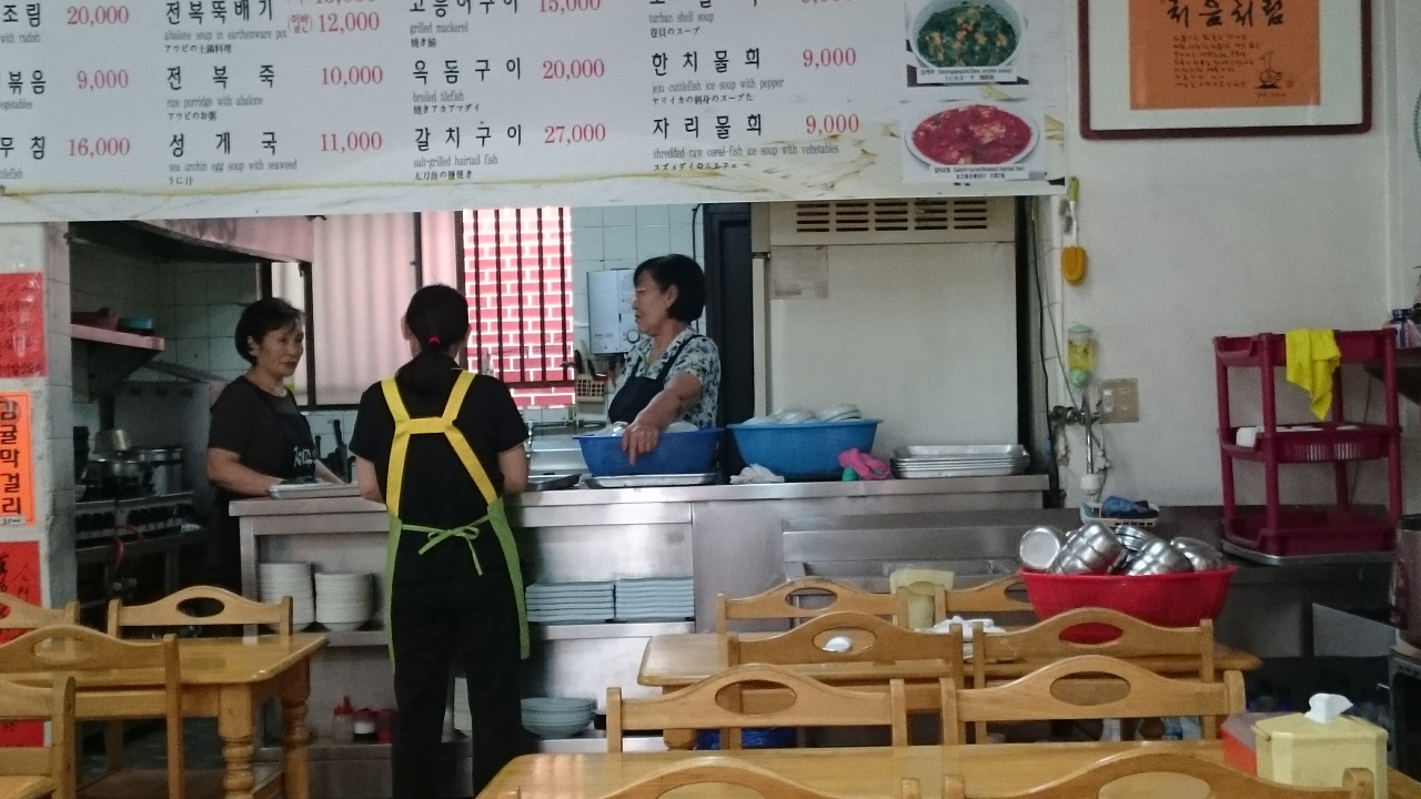 旧済州のKALホテルのコンシェルジュに教えてもらったお店で、済州市庁の裏手にあるお店で地元向けの定食屋さん。ホテルからお店までタクシーで2800Wでした。地元の人が多く通うお店で、伝統のある(といっても15年ですけど)のあるとのこと。メニューは太刀魚の煮つけやアワビの焼き物、そしてウニ汁などが済州島名物の海鮮料理がリーズナブルに食べることができます。目的はウニ汁(ウニとワカメのスープ)で1,1000Wでした。付け合せのキムチやキュウリのキムチも美味。でも何よりもウニ汁は、ウニがこれでもか、というくらい入っていて、ワカメとの相性も最高。ウニそのものにはあまり味はありませんが、磯の味がスープにしっかりでていて、こってりした韓国料理とは異なり、日本人にもあう優しい味です。ご飯と一緒に食べると、雑炊になって、また美味。朝7時から開いているので朝食にも使えます。