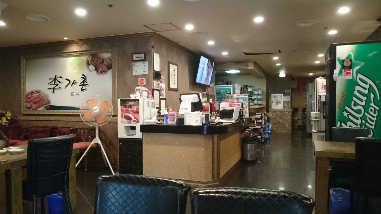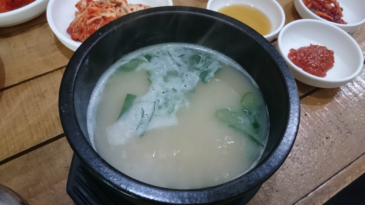 地下鉄4号線明洞駅から徒歩数分、ビルの3階にあります。韓国では珍しいお一人様もOKの焼肉店で、冷麺やクッパなどもありますが、やはりこのお店ではお肉が食べたい。豚のカルビ定食が12000ウォン、牛カルビ定食が28000ウォンと少し高めですが、味は本物。タレに付け込まれたカルビは思ったほど脂っこくない。おかずで出てくるオムレツもふわふわで美味。口で溶けてしまうくらい泡立ててあり、これだけでも頼みたいくらい。この他ソーセージを甘辛く和えたものや貝柱のスープも美味でした。韓国では珍しく生ビールもあります。