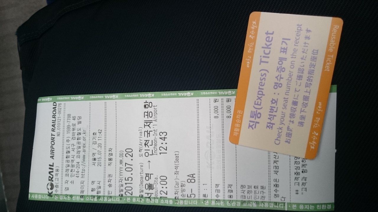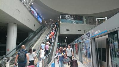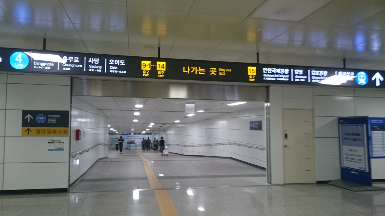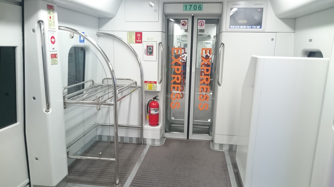 ソウル駅から金浦空港を経由して仁川空港までを結ぶアクセス鉄道で、ソウル~仁川空港までを、エキスプレスで44分。各駅停車で60分。空港駅と空港周辺施設の駅以外にも、孔徳、弘大入口、デジタルメディアシティ(ソウル市内)でソウル地下鉄に、桂陽で仁川地下鉄に乗り継ぐことができる。ソウル~仁川空港間の運賃は、エキスプレスが800ウォン、各駅停車が390ウォンで、バスよりも安いですが、倍以上ちがうので、15分の価値をどう考えるかだと思う。このためか、エキスプレスは比較的空いています。(各駅停車はもう少し混雑しています。)時間が読める、バスやよりも速いという利点はありますが、金浦空港駅、仁川空港駅いずれもターミナルから離れていて、駅到着から航空会社のカウンターまで10分以上は歩かなくてはならない、ソウル駅は地下も深く、鉄道、地下鉄ともに遠くにあり、さらにはソウル地下鉄のホームからエスカレーターが未整備な場所もあり、スーツケースがある場合はオススメできにい。また、成田空港アクセスの京成スカイライナーのように出発時間も均一ではないので、使いづらいのも残念。