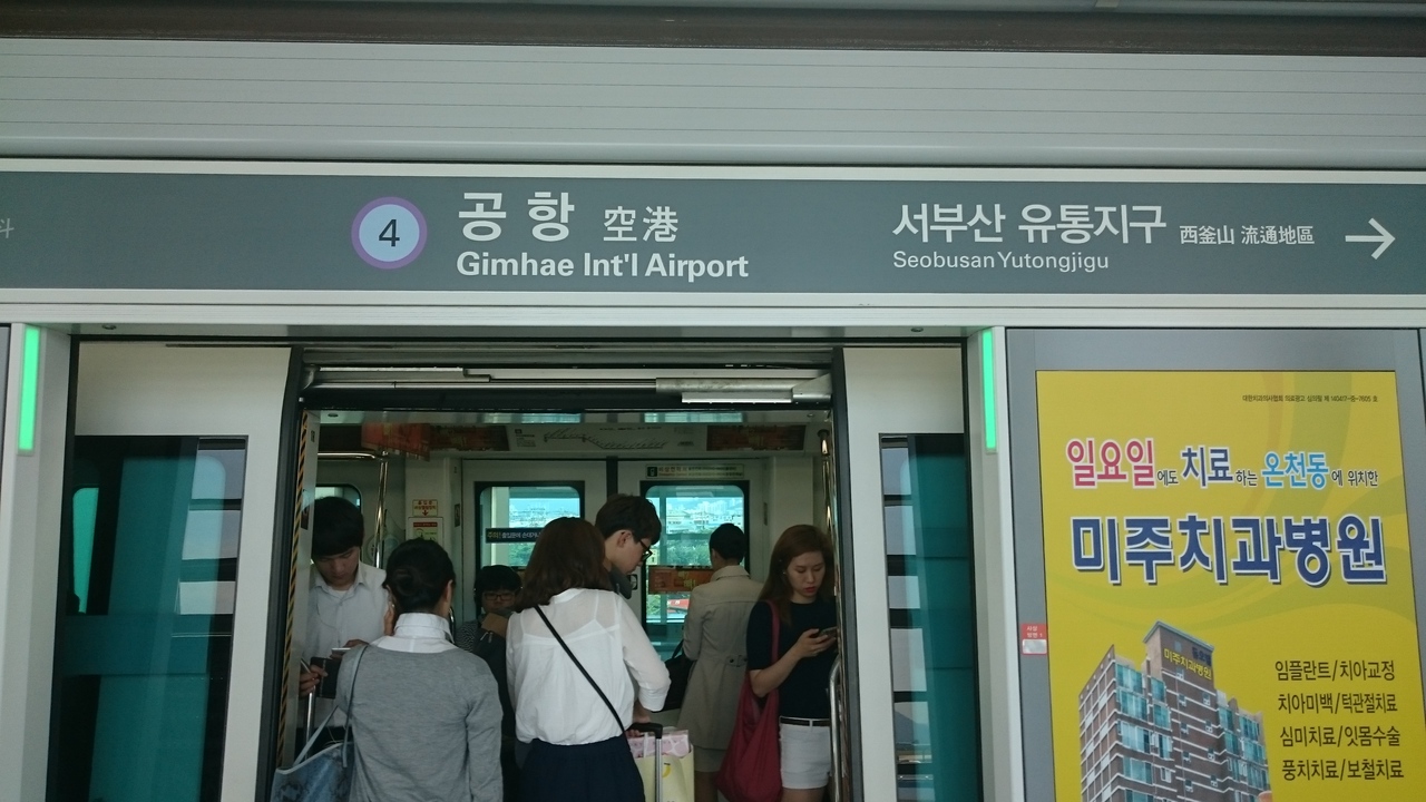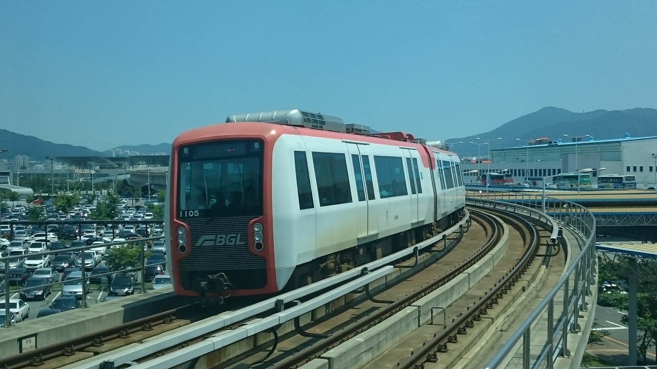 2011年9月に開業した比較的新しい路線で、釜山広域市とお隣の金海市を結ぶ鉄道として計画。「釜山空港鉄道」との別称の通り、釜山(金海)国際空港を通るので、釜山市内と空港を結ぶアクセスの役割も持っています。釜山の地下鉄の路線図にも掲載されているので、釜山地下鉄(交通公社)の一路線と勘違いすることがありますが、別会社であり、運賃も別体系で、T-Money利用の場合を除き、割引もありません。起点の沙上駅で地下鉄2号線、大渚駅で地下鉄3号線に連絡しており、空港↔市内(西門、釜山駅、センタムシティ、海雲台など)へは乗り換えが一回で済むので、時間が読める点ではバスより便利。しかし、車内に荷物置き場があるわけでもなく、地下鉄の方は、エスカレーターが完全に完備されているわけではないので、観光で使うのは若干微妙なところもあります。無人運転なので、先頭車輛からの展望はかなりよいです。