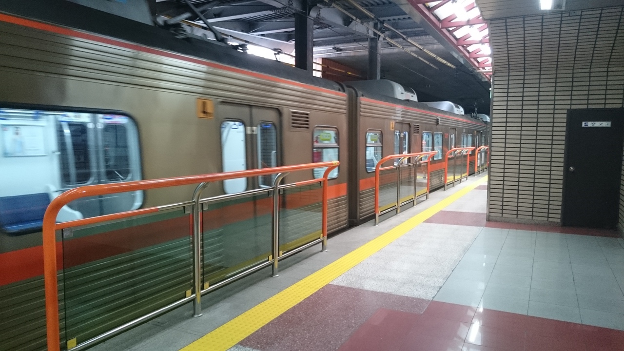 1号線は釜山市内を南北に走る路線で、チャガルチ市場、南浦洞国際市場、釜山タワー、東菜温泉などの観光スポットに加え、KTXの始発駅でもあるKORAILの釜山駅や釜山総合バスターミナルのある老園などを通ります。ロッテ百貨店やロッテホテルのある西門が、2号線との乗り換え駅になります。東京メトロの東西線5000系をイメージさせるような少しゴツい車輛で運行されています。