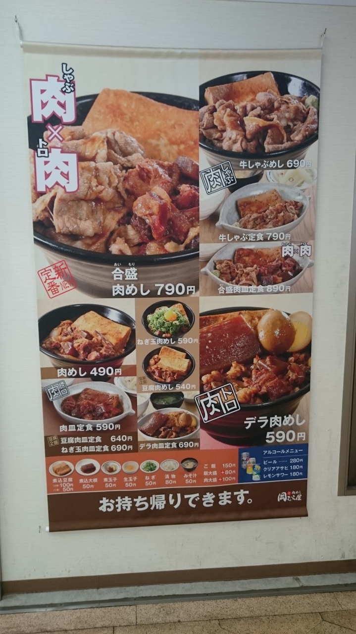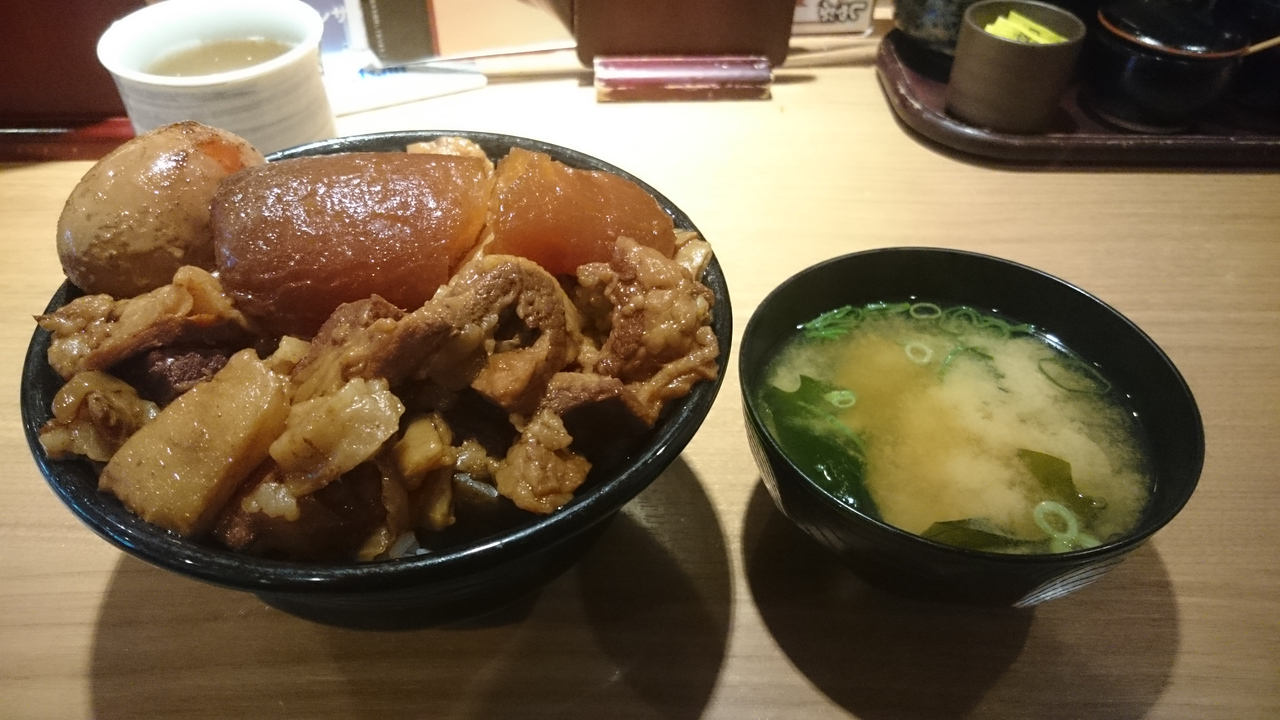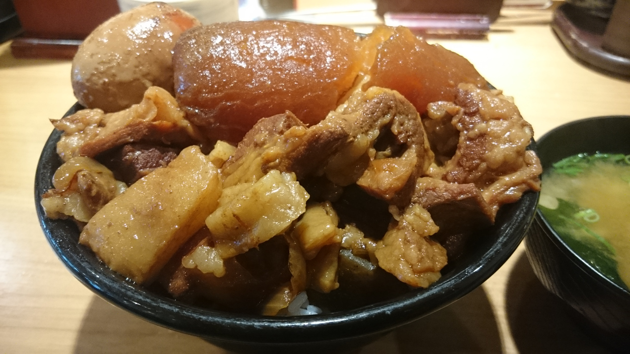 ニュー新橋ビルの1階にあり、お店にはビルの中からも外からも入ることができます。牛しゃぶ飯、肉めし、デラ肉めしの三種類があり、合盛もありますが、オススメはデラ肉めし。トロトロのスジ肉と味の染みた豆腐と大根、ゆで玉子がご飯の上に踊っているよう。少し甘味のきいたすき焼き風のお肉とご飯のコラボレーションは、ガッツリいきたい丼ものという印象です。パワーをつけたいときに食べたい丼ものです。