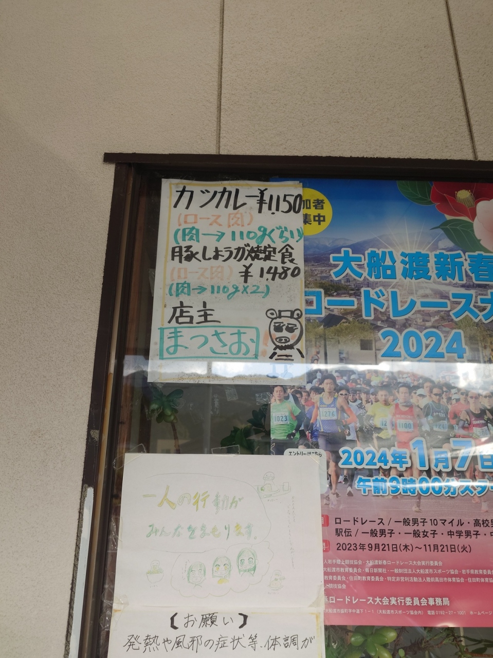 三陸鉄道・大船渡線BRT盛駅からすぐのところにある食堂。ラーメン、ざるそば、定食モノ何でも来いのお店だが、人気ナンバーワンは「カツカレー」。普通盛りでも大盛りの御飯の上に、カツカレーにピッタリのカツ(110gとのこと)が乗り、甘めのポークカレーがかかっている。こういうご飯、たまに食べたいんだよなぁと思ってしまう味でした。
