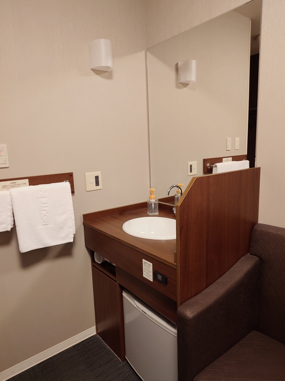 三陸鉄道・JR宮古駅からバスで15分くらいのところにあるルートイン。2013年12月に、復興支援ホテルとしてオープンしました。もともとは玄関で靴を脱ぐスタイルだったようで、ロビーはその雰囲気が少し残っています。開業当初からある西館と東館、2016年に増設された南館からなる全278室の大型ホテル。ホテルの前は入江になっていて、建物の隣の森、隣のガソリンスタンドを除けば何もない、波の音しか聞こえないようなところにあり、他のルートインとは異なる3階建ての低階層建物。海外にあるモーテルのような感じで、駐車場はかなり大きいです。内側の部屋だったのでおむかえは客室で眺望は残念でしたが、部屋は広く感じられ、必要な設備も揃っています。大浴場があるためか、私の部屋はバスやシャワールームはありませんでした。エレベーターは1基しかありませんでしたが、低層階のホテルなので問題ないかと。大浴場は広くはありませんが、12個も洗い場もあり、のびのびしています。サウナがあればさらに最高ですが、ないのは残念。とはいえ、旅の疲れを癒やすには十分で、リラックスできました。自社サイトで申し込むと無料になる朝食は、基本に忠実というか、特徴はなく、フルーツもなし。けんちん汁が美味しかったという印象。近くに座っていたアジア系の方は喜んでいましたが。。。会社のユニフォーム姿の方も多く、一方で観光の方もちらほら。快適ですが、やはり駅から遠いのは残念。こういったホテルが宮古駅周辺にあってもいいかなと考えますが、ルートインさん是非ご検討を。