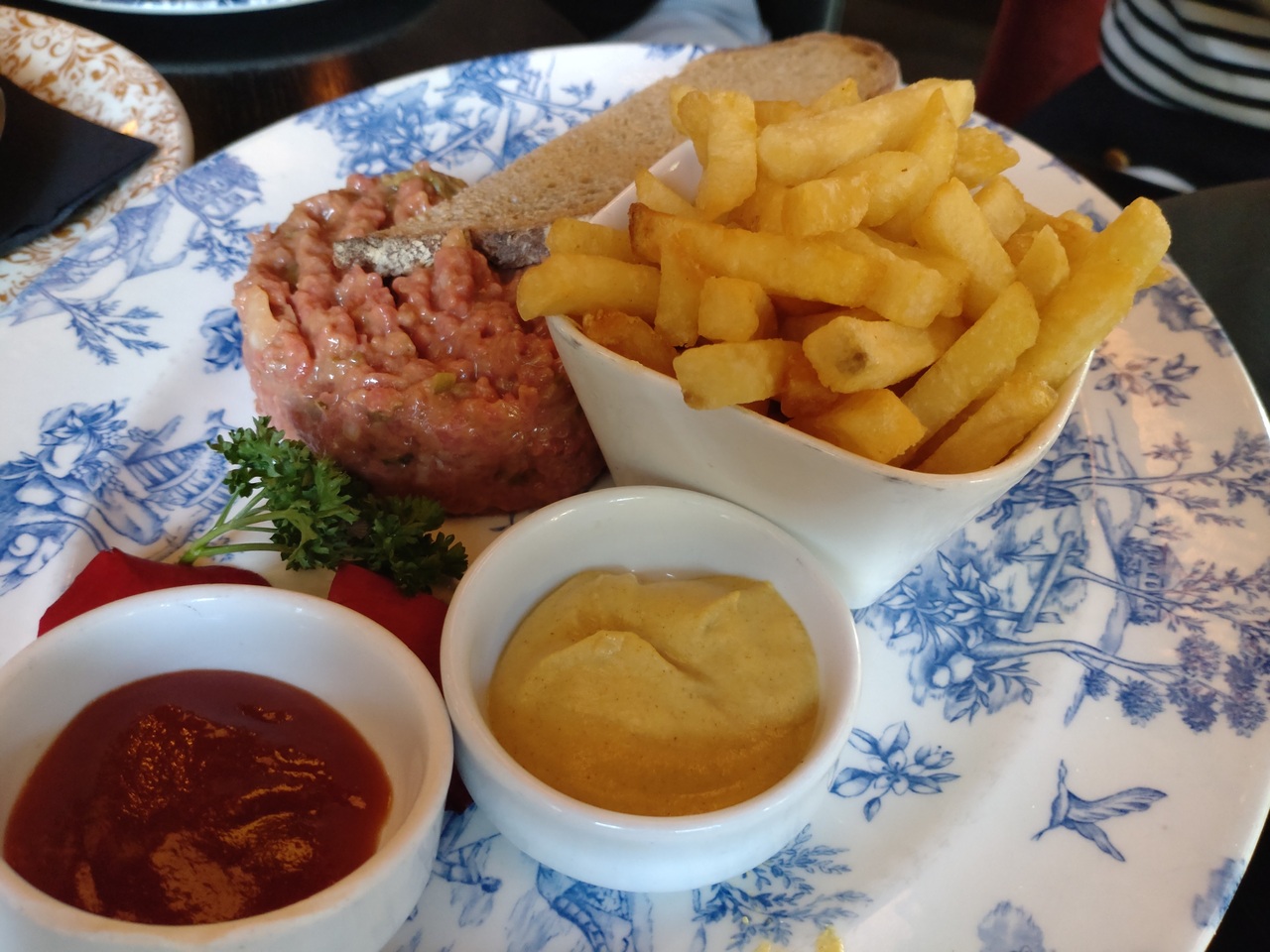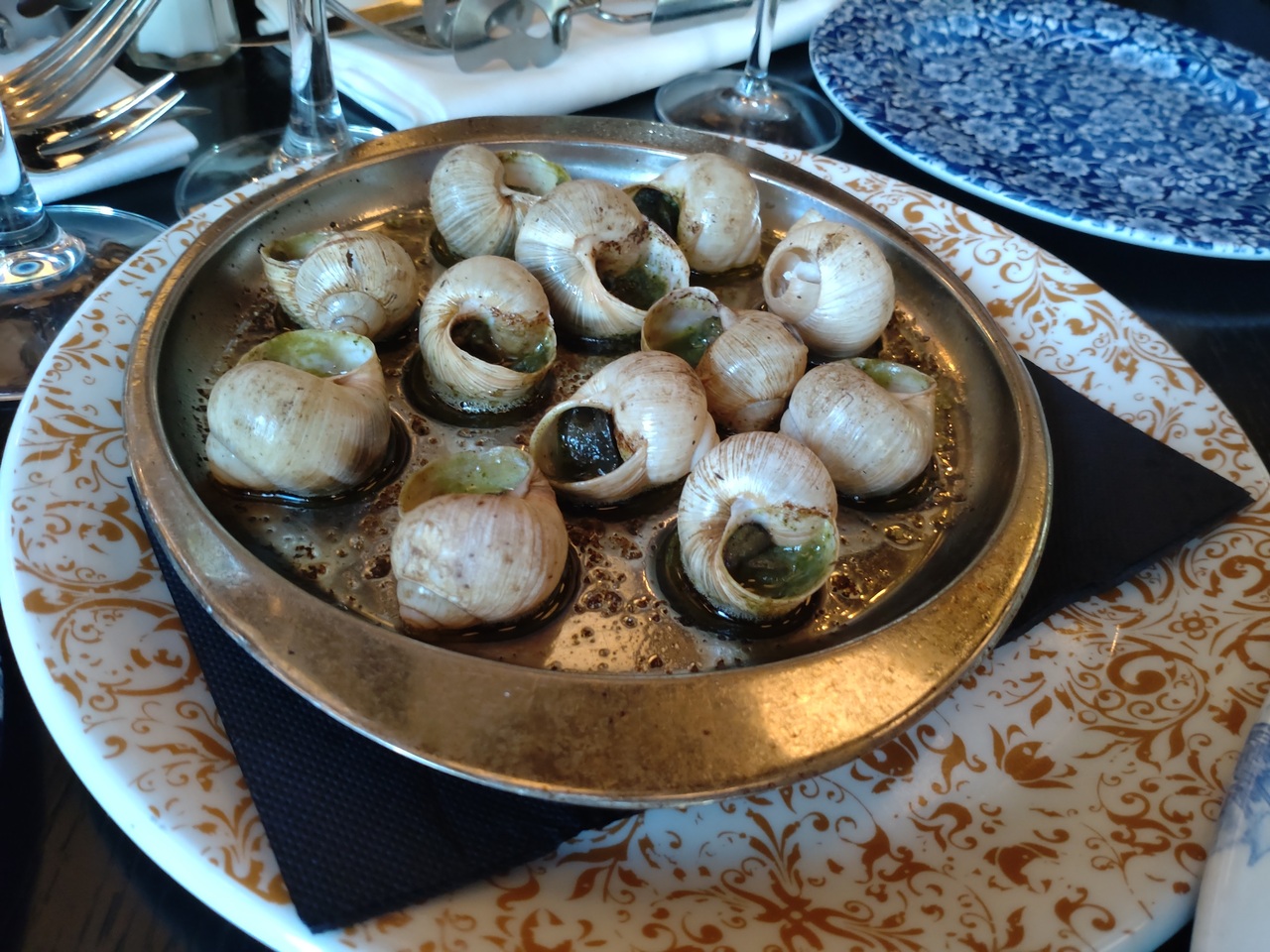 凱旋門近くにあるビストロ。ポルト・マイヨー駅からも徒歩圏内で、昼はビジネス客も多い。テラス席もあり、日が落ちるのが遅い夏はこちらのほうが人気。エスカルゴ(ビストロにはかならずあるメニューではない)やタルタルステーキ、レバーペーストなど、フランスでぜひ食べたい料理と、食事にあうワインを気軽に楽しむことができます。エスカルゴは地元の方に言わせると「平均的な味」とのことですが、貝のような食感で、にんにくやパセリ、塩胡椒の入ったバターの味わいが楽しめます。フランス料理定番のタルタルステーキは、肉の風味も感じられる逸品で「肉を食べている」という感覚が得られます。レバーペーストも臭みがなく、美味でした。値段は、シャンパンとワインを空けた上で7000円くらいだったので、パリでは平均的なものだと思います。