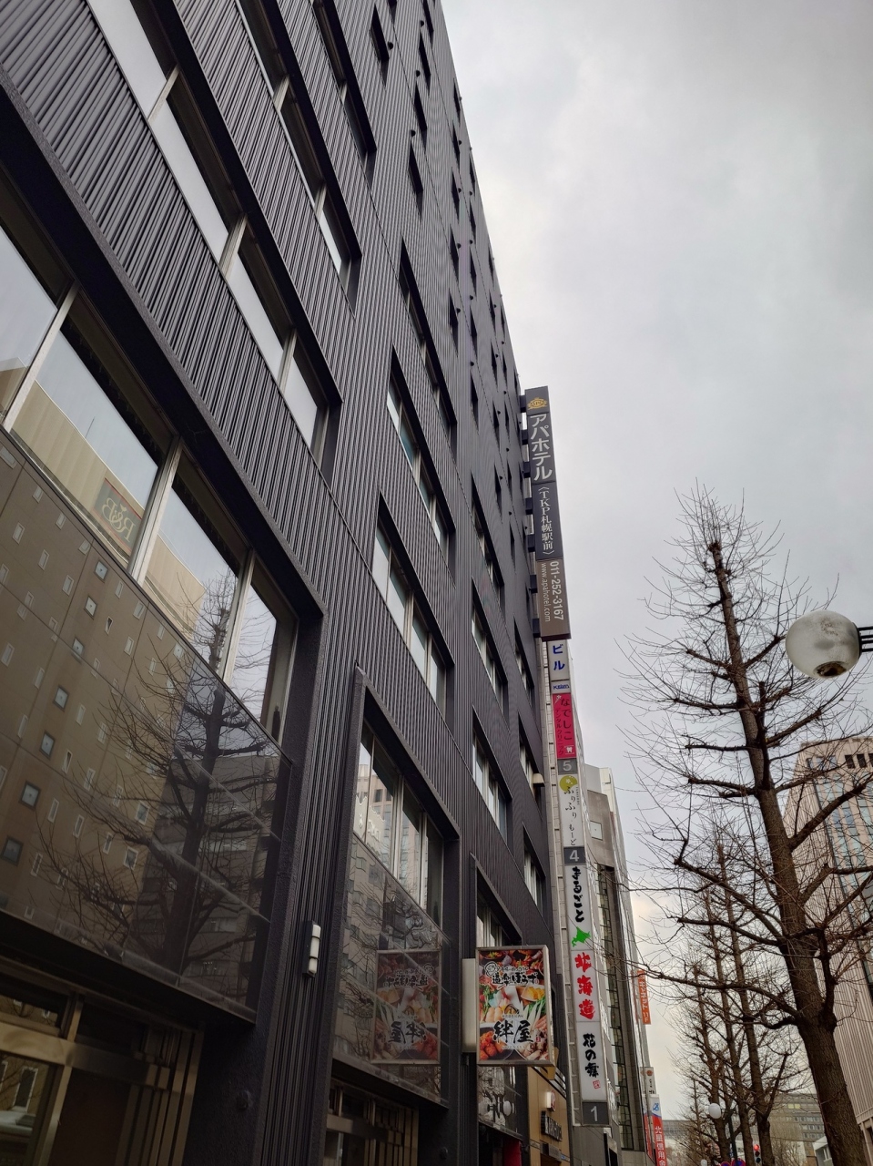 札幌駅南口から徒歩5分くらい、大通駅からも徒歩圏内、TKPガーデンシティの6階から上の階にあるアパホテル。TKPはアパホテルのフランチャイズを行っており、その一つ。ガーデンシティからホテルの手配も可能。ホテルの入口はアパホテルとわかる装飾ですが、中に入ると本当にホテルがあるのか心配になるような、雑居ビルのようなイメージ。6階に行くとフロントがあるのでなんとなく安心。部屋の広さ、内装は完全なアパスタイルで、机と椅子、ベッドはありますが、寝るためのホテルという感じで狭い。リニューアルされているようで綺麗ですが、カードキーではなくシリンダーキー式の少し古めのもの。大浴場はなく、バスルームも狭いものの、バスタブが大きい点はプラス点。ただ、寒い北海道なのに便座が冷たい。窓はありますが、曇ガラスで部屋も暗く、昼間から電気をつけなければならない。アパホテルの部屋には、元谷代表と元谷社長の本が置いてあるのが通例ですが、こちらにはTKPの河野社長の本も置いてありました。立地は言う事なしなのでビジネスで寝るだけならありかと。