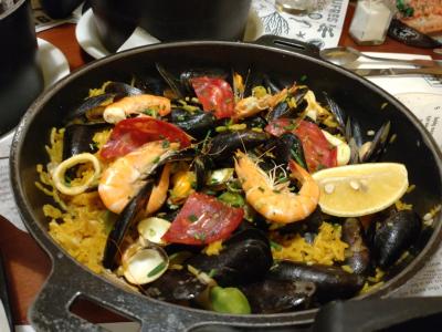 パリメトロ1号線・RER C線ポルト・マイヨ駅前にあるブリュッセル名物のムール貝などが食べられるお店。「レオン ド ブリュッセル」は、1893年創業のベルギー・ブリュッセルの老舗ムール貝専門店「ジェ・レオン」が、シャンゼリゼやオペラをはじめパリ市内に9店舗、フランスで80店舗近くのお店を展開するチェーン店。「パリでムール貝を食べるならココ」と言われるお店で、こちらはパリ国際会議場に近いことから、展示会開催中などは外国人の利用も目立ちます。お店の感じは、カフェというよりは日本のファミレスのような感じで、カジュアルに入れます。このお店で是非食べたいのが「ムール貝の白ワイン蒸し」。大きなバケツに盛られたムール貝は、独特の苦みとコク、プリっとした弾力があり、さらにニンニクの香りで、いくら食べても飽きない感じです。さらに旨味が凝縮されたスープをパンに浸して食べるのも美味。このほかフィッシュアンドチップスや、ムール貝の入ったパエリアも頼みましたが、もちろん美味。なかなかお高いイメージのフランスのレストランですが、価格も比較的リーズナブルで、肩ひじ張らずに食べられる嬉しいお店です。