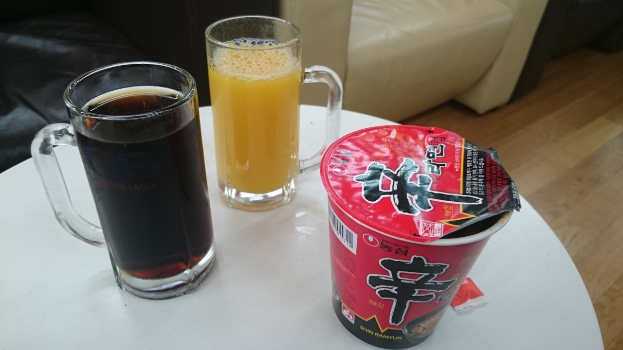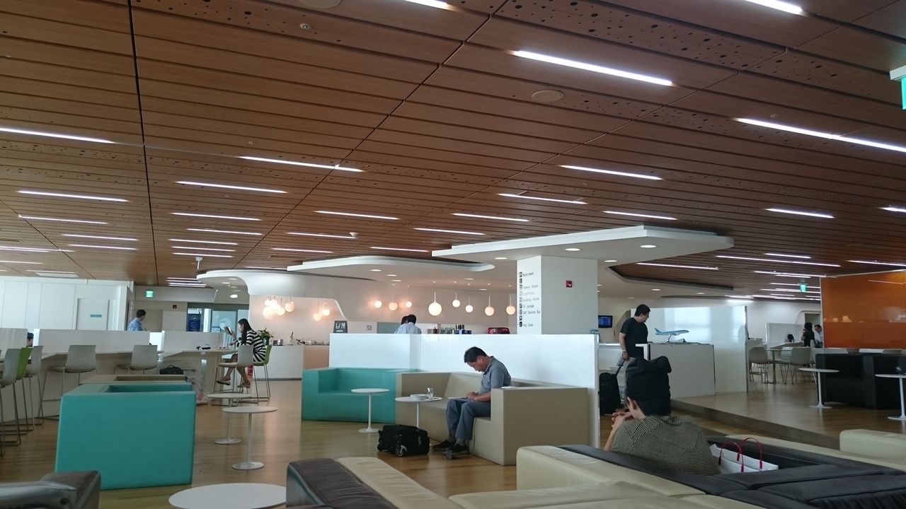 JAL利用者の仁川、金浦の指定ラウンジは、KALラウンジで、仁川はこちらが指定場所。サテライトコンコースの4階にあり、115番搭乗口の真上にあります。窓からはブルーの大韓航空の飛行機がやたら見えますが、あとはそう特徴もありません。逆に食べ物がかなり淋しいものがあり、チャーハンと炒め物くらいしかないし、味もいまいち。カップの辛ラーメンを食べている人がやたら多い。逆にそれくらいしか食べ物がないという印象。コップも食器洗い機で洗ったような傷がついているものばかりだし、新聞も乱雑に並んでいる。テーブルもお世辞にもきれいとは言えない感じ。スタッフの数も少ないので。これが韓国のナショナルキャリアのハブ空港のラウンジ?と、疑いたくなるレベル。JALやANAのレベルは高過ぎるにしても、このレベルは残念。もう少し力をいれないと、大韓航空を使うのもためらうかも。