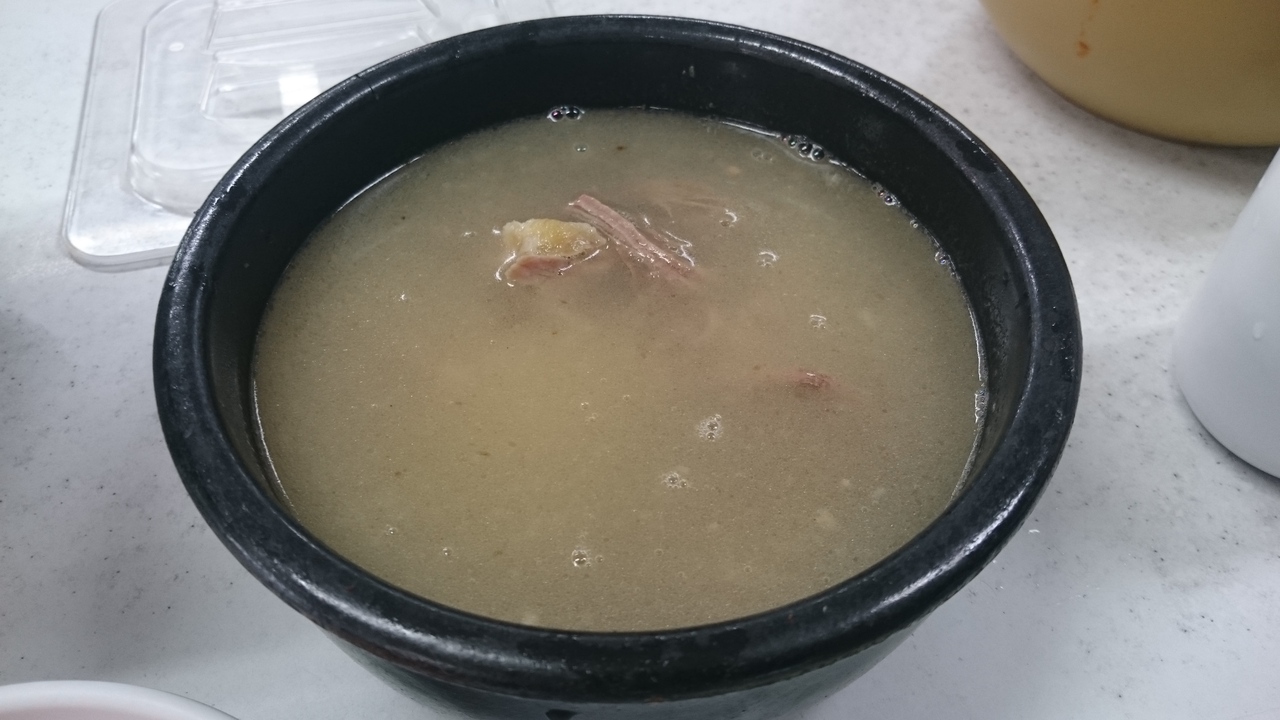 地下鉄3号線新沙駅近くにあり、徒歩ですぐです。大きな通りから一つ曲がるとすぐわかる場所です。メニューはソルロンタン(9000ウォン)と牛茹で肉(スユッ)(35000ウォン)のみ。一日煮込まれた牛肉と牛骨の味か、しっかり出ていてうます。肉の処理はしっかりされているので、脂っぽくなく、くどくありません。スープの中には、韓国の細めのうどんが入っています。ご飯は別に出されますが、たいていの人は、ご飯もスープにいれてたべます。細切りのお肉がたくさん入っており、満足感もあります。味は塩とネギを好みで調整していくタイプです。白菜キムチと大根のカクテキは食べ放題で、自分でハサミを使って切るたタイプ。特に大根のカクテキは酸味が効いていて辛くありません。味に飽きたら、やかんに入っている大根カクテキの汁を入れると酸味が加わりさらに美味しい。