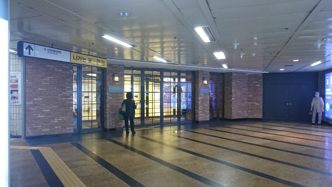 地下鉄3号線押鴎亭駅直結。地下2階、地上5階建で、本店としては、やや小ぶりだか、ロッテ本店比べて、落ち着いた雰囲気がある(と言って新世界の本店の高級感ほどはない)。通路も広く、商品の並べ方などもおしゃれにまとまっている。地下1階には、食品館があり、高級スーパーのような感じ。新鮮な魚や肉も対面で売られており、お土産になりそうなものもだいたいはあった。会計はレジで行うのでカゴや持って移動する。また小さなフードコートもあり、回転寿司や日本食、韓国料理などのお店がある。5階には、日本食、韓国食、イタリアンなどのレストラン街。簡単な日本語表記もパンフは日本語も準備されている。