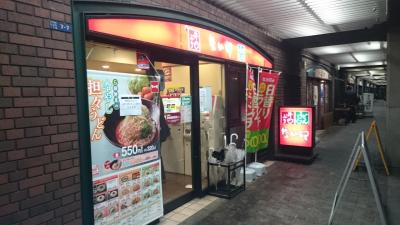 ビジネス街ながら、夜の早い丸の内。オアゾや八重洲地下街が閉まった夜11時を過ぎてもやっている貴重なお店。24時間営業です。丸の内北口は、どういうわけか、近くに吉野家も松屋もすき家もなく、このためか夜遅くまで賑わっています。お店は、中央線の高架下にあり、鰻の寝床のように長い。中央にキッチンがあり、両端がテーブル席で、真ん中がカウンター。両端に券売機があります。350円の和風牛丼は、長ネギや白滝も入っていて満足感あり。150円のセットでサラダと味噌汁がつく。このほか、カツ丼やカレー、蕎麦、うどんなどのメニューも豊富で嬉しい。