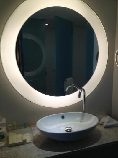 77階建のオフィスやお店などの入った複合ビルにあり、上部階がホテル。ロビーは1階にある。広いロビーで、車寄せも大きい。エレベーターは多数あるが、部屋まで直通のものはなく、41階で乗り換える。(レセプションではちゃんと教えてくれなかった)エレベーターの出入り口の前から部屋があるのも面白い。部屋の特徴は、床張りがカーペットではなく、木製であること。カーペットに比べゴミがすぐわかるのですが、清掃はゆき届いていました。バスタブはしっかりとしたものがありますが、部屋から丸見え(カーテンはあります)なので、友達との同室は恥ずかしいかも。バスタブとシャワールームが、若干離れているので、移動の際床を濡らさないか、気をつける必要あり。また、シャワールームが隣のトイレの床に水がたまることがありました。Wi-Fiは部屋は有料で、無料はロビーだけですが、ロビーで使う人が多いためか、うまくつながりませんでした。ベッドの硬さはちょうど良く、机もまぁまぁ広いので、ビジネスの場合は、有料のWi-Fiを使えという感じでした。止まった部屋が73階ということもあり、郊外ながらも部屋からの眺望はかなりよかった。隣のショッピングセンターやAEONは、歩道橋でつながっているので、買い物には何かと便利。冷蔵庫は何も入っていないので、飲み物を冷やすことができます。場所は、中環や銅鑼灣、旺角などのメインスポットにはMRT利用。最寄り駅の西錢線の荃灣西からは乗り換えが必要。空港からだと、二回乗り換えか必要なので、タクシー利用となる。空港までは200HKドル強。郊外なので、中心部に比べて安いので結構オススメ。