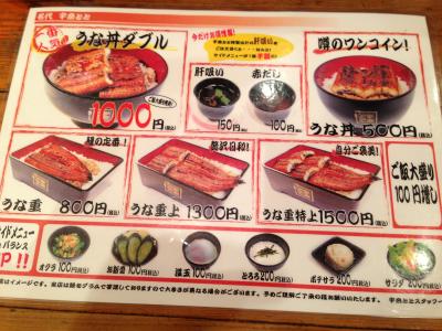 大阪発祥で現在、東京と大阪で展開するうな丼のチェーン。うな丼(うなめし)500円、うな丼ダブル1000円という価格に驚きですが、外国産(多分中国)の鰻ながらも、身が厚くて柔らかく、しかもちゃんとした小さくない鰻(少し大味ですが)。コスト削減と時間短縮のためか、一度焼きあがった鰻を、さらに炭火で焼いて提供してあるようですが、しっかりとした味付けもあってか、スーパーの中国産鰻とは比べ物にならないレベルです。ビールやおつまみ用のうざくなどもあります。もちろん、日本産や天然物を提供する老舗とは比べ物にならないわけですが、赤だしのサービス券があったりと、コスパはかなり良い、庶民の味方なお店です。