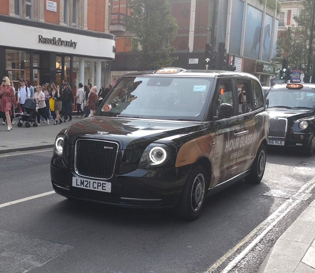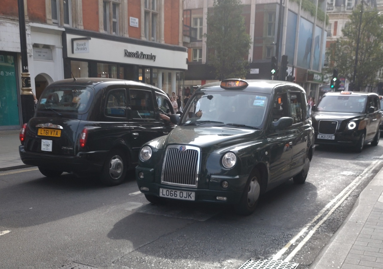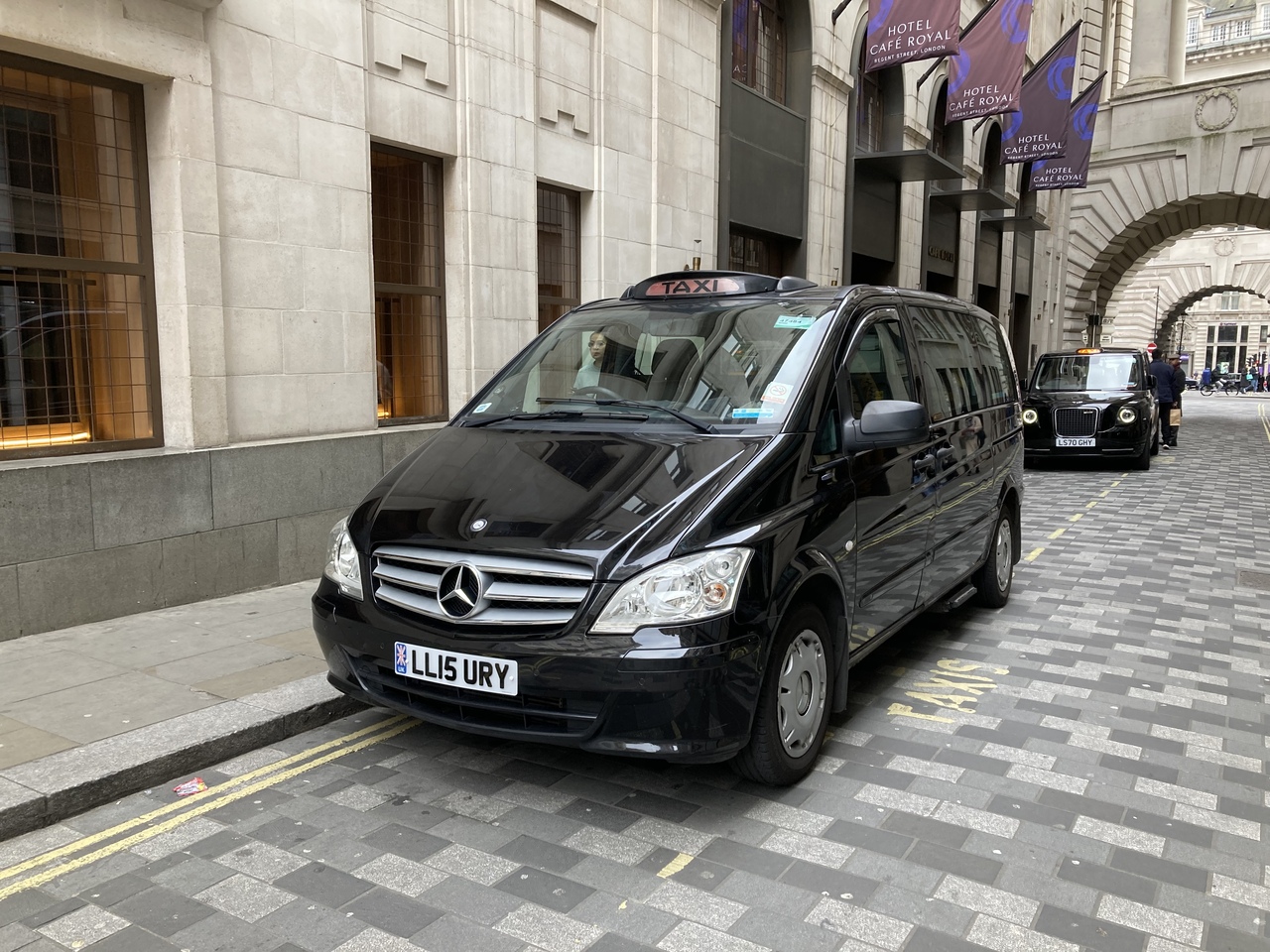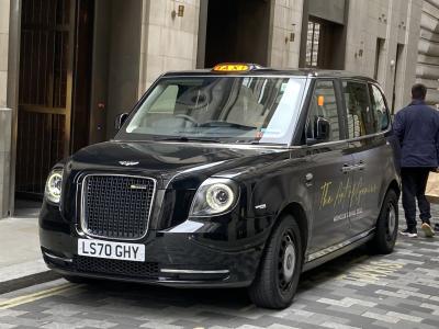 ロンドン市内を走るタクシー。黒塗装の車が用いられていたことから「Black Cab」と呼ばれるが、最近の新型車はラッピング広告車も多く、必ずしも黒ではない。シルクハットを着用したままでも乗り降りができるように設計された大きく開くドア、高い天井を用いられた車両が用いられています。車種は、長くオースティンやマンガニーズの車両が用いられていましたが、2008年頃からメルセデスベンツのVito、2012年からは日産のNV200も使用されるようになりました。最新のTXは相変わらず大型車ですが、お客が6人乗れる(従来のTXは5人)ようになり、プラグインハイブリッドの電気自動車になりました。ロンドン市内のあらゆる道路に関する知識と、建物、駅、公園など公共施設に関する知識を習得しないと合格できない世界一難しいとも言われるタクシー運転手の資格試験に合格したドライバーであるので、観光地やホテル名、住所(通り名)を言えば、大抵の目的地に行くことはできるが、その分、運賃はミニキャブやUberに比べて高め。運転手さんは以前と変わらず愛想はなく、以前よりはトラブルもありますが、レベルの高い乗り物であることは変わりがありません。