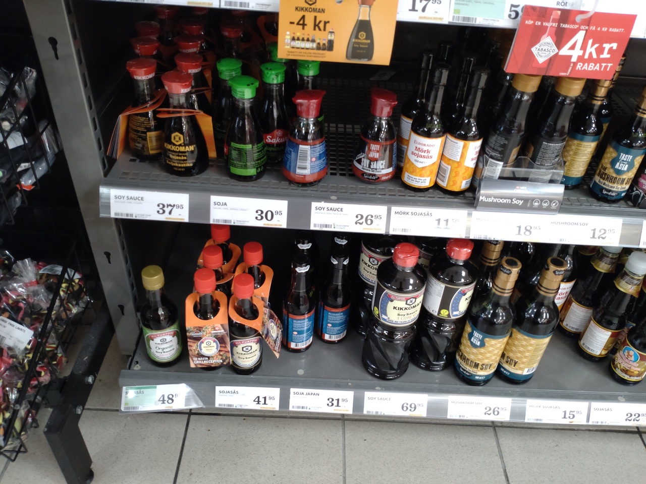 ICA(イーカ)、COOP(コープ)と並ぶスウェーデン主要スーパーの一つ。ストックホルム市内にも多数ありますが、地方都市に行っても大抵はあるお店。ルドヴィカに行ったときも、市内中心部唯一のスーパートとして営業していました。スウェーデンの他のスーパーと同じく入口も出口が別れていて一方通行で、入口にはゲートがあります。野菜は量り売りが中心、ソーセージの種類が多く、さまざまなコーラや炭酸飲料が並んでいました。意外や意外、醤油も複数メーカーの商品が並んでおり、中でもキッコーマンは多数の種類が並んでいました。海老やイクラ、ザリガニの入ったチーズチューブも多数あるので、おみやげ探しにも良いかも。