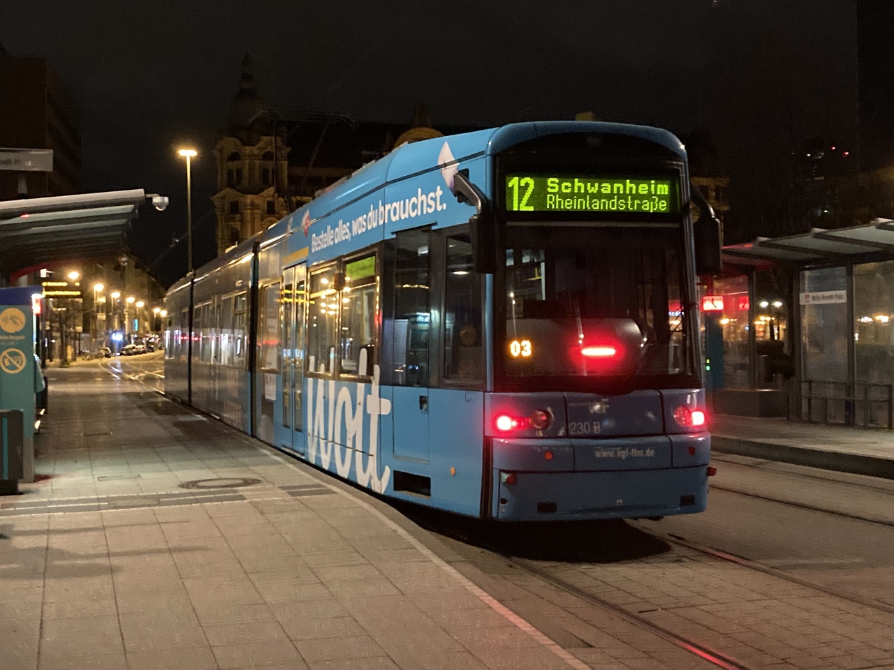 フランクフルト市内を走る路面電車。ドイツでは路面電車のことを「StraBenbahn(シュトラーセンバーン)」と呼んでおり、フランクフルトも同様。フランクフルトのUバーンは、路面電車規格で作られており、車体のカラーも同じ青緑(ターコイズブルーグリーン)の一色塗りなので区別がつきにくいが、多くが床上の高さが低く、バリアフリーに適した超低床の3車体の連接車を使用しています。市内の至るどころを走ることから路線も多く、系統番号を確認して乗らないと、なかなか目的地に着かないという点は注意ですが、乗車方法は難しくなく、SバーンやUバーンのように地下を走っているわけではないので、乗りやすい。チケットは、Sバーン、Uバーン、トラム、RMVが運行するバスは共通で、ZONE5000のみなら1回券は2.75€、1日券が5.35€なので3回以上乗車するなら1日券のほうが得。扉は自動ではないので、レバーもしくはボタンを押して乗車する必要があることと、1回券の場合、車内で乗車券を打刻する必要があり、これを忘れると不正乗車とみなされ、抜き打ち検札で見つかると罰金の支払いとなるので注意。