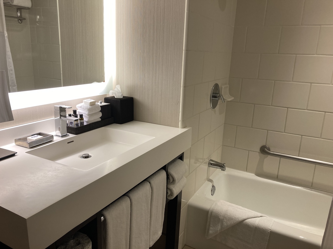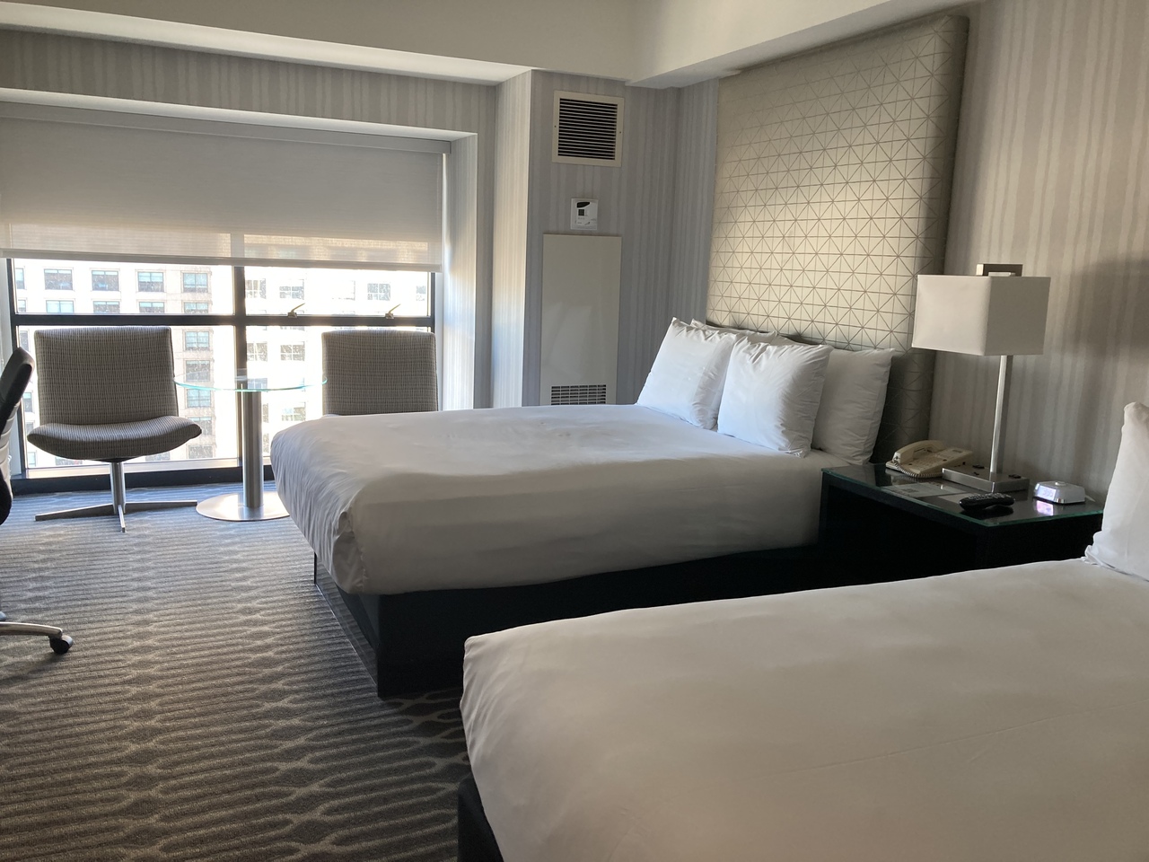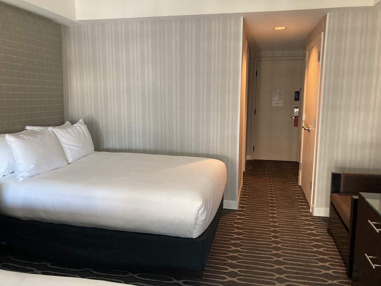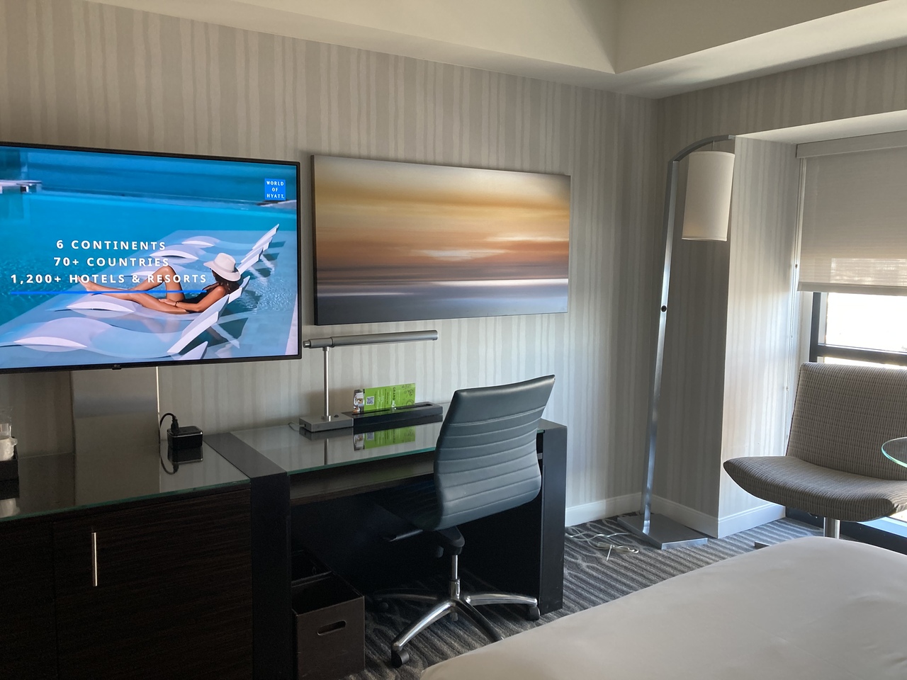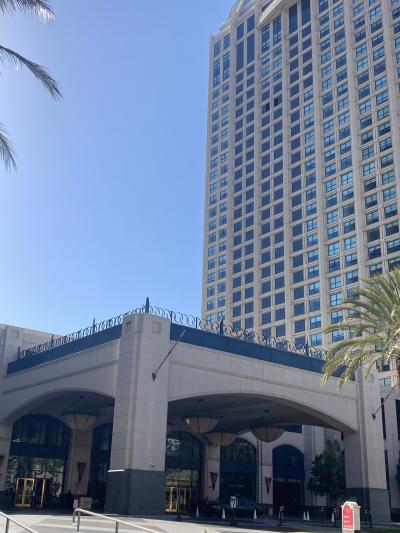 サンディエゴのダウンタウンにあるHYATT。お隣がMarriottで、その先が大型のコンベンションセンター。レストランの多くある繁華街のガスランプ・ウォーターやパドレスの本拠地Petco Parkの近く。目の前にはトロリーの駅もあり、空港からタクシーで15分くらいのところと、ビジネスでも観光の拠点としても便利なところにある。目の前からはサンディエゴのシーポートビレッジが目の前で景色も良い。1628室もある大型ホテルで中央にフロントがあり、2棟の客室が左右にあります。クラブルームのダブルベッドルームに泊まりましたが、広さは32㎡あるので部屋は広々。設備はそう新しいとも感じませんでしたが、机も十分な広さで、必要なものは揃っており、ビジネスでの利用にも問題はありません。円安の影響もありますが、朝食の料金が日本円にすると6000円を超えてしまうもので、これはかなり辛い。単なるバイキングなので、かなり高く感じました。売店やコーヒースタンドもあるので、初日を除いてそこで食事を済ませましたが、それでも日本の感覚からすると高く感じるかも。