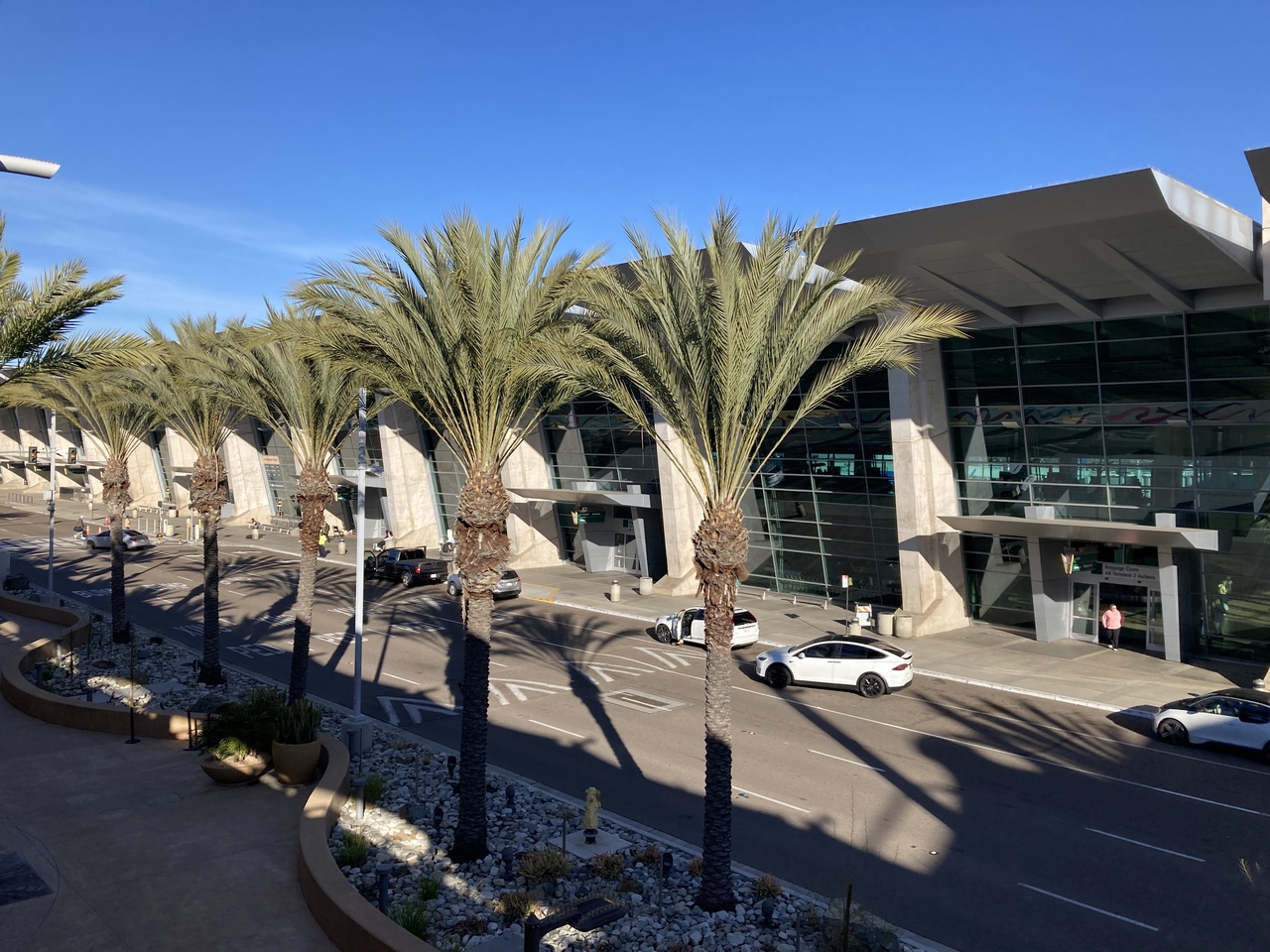 サンディエゴのダウンタウンから15分くらい、約4km北西にある国際空港。サウスウエスト航空をはじめ、ユナイテッド航空、アメリカン航空(AA)、アラスカ航空(AS)などが全米各地へ収納している他、ブリティッシュエアウェイズ、ルフトハンザ、日本航空(JAL)などが乗り入れており、日本へは現在、週4~6便、成田行の直行便が就航している。主要空港にも関わらず268haと小さい空港で、滑走路が1本しかないものの、年間2000万人前後が利用する。混雑空域や着陸時の滑走路の有効長が短い(進入路に高い木がある)ことからヒストリーチャンネルでは危険な空港第10位に選ばれている。一方、大西洋単独横断飛行に成功したリンドバーグはこの空港から出発したことにちなみ「リンドバーグ空港」とも呼ばれており、荷物受渡しのターンテーブルには飛行機のオブジェが展示されています。
