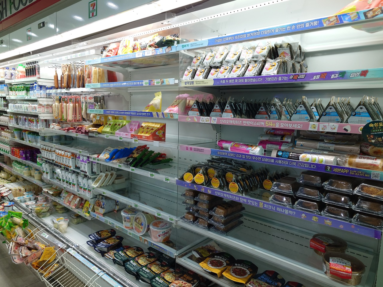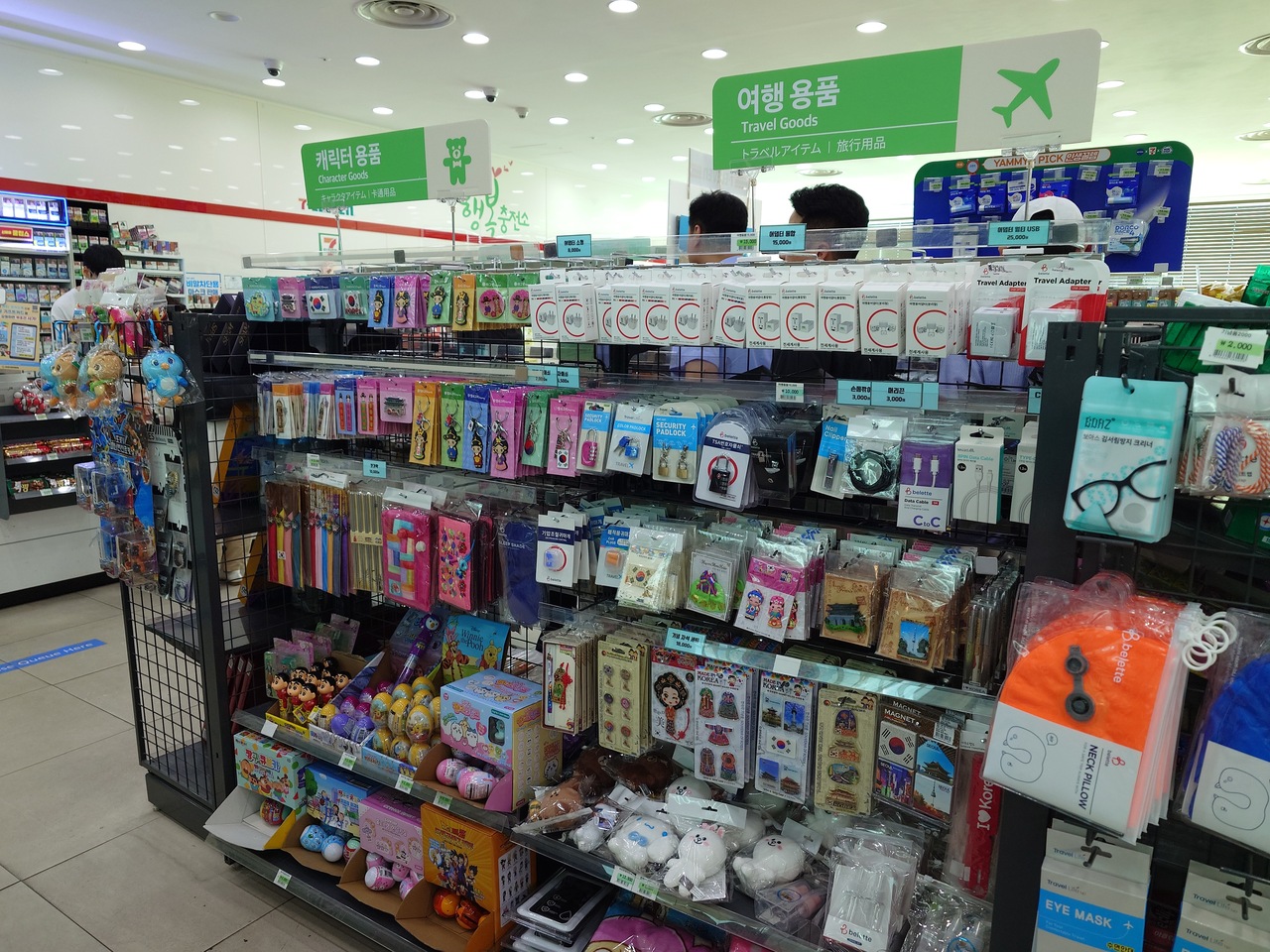 大韓航空とスカイチームの航空会社が使用する仁川国際空港第2ターミナルの制限エリア内にあるゼブンイレブン。249番ゲート近くよりエスカレーターを利用したところにあり、ちょうど大韓航空のプレステージラウンジのおむかえにあります。日本と同じく、おにぎりやサンドウィッチ、ドリンク、お菓子、アイスクリームと日用品が中心ですが、冷凍食品も販売。「すぐに食べられる」とありますが、日本国内への韓国産の肉類の持ち込みは禁止されているので注意。場所柄、トラベルグッズも豊富。また、奥にはマッサージチェアがおいてあります。