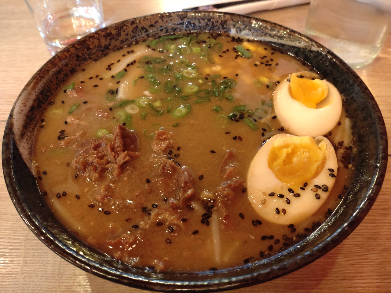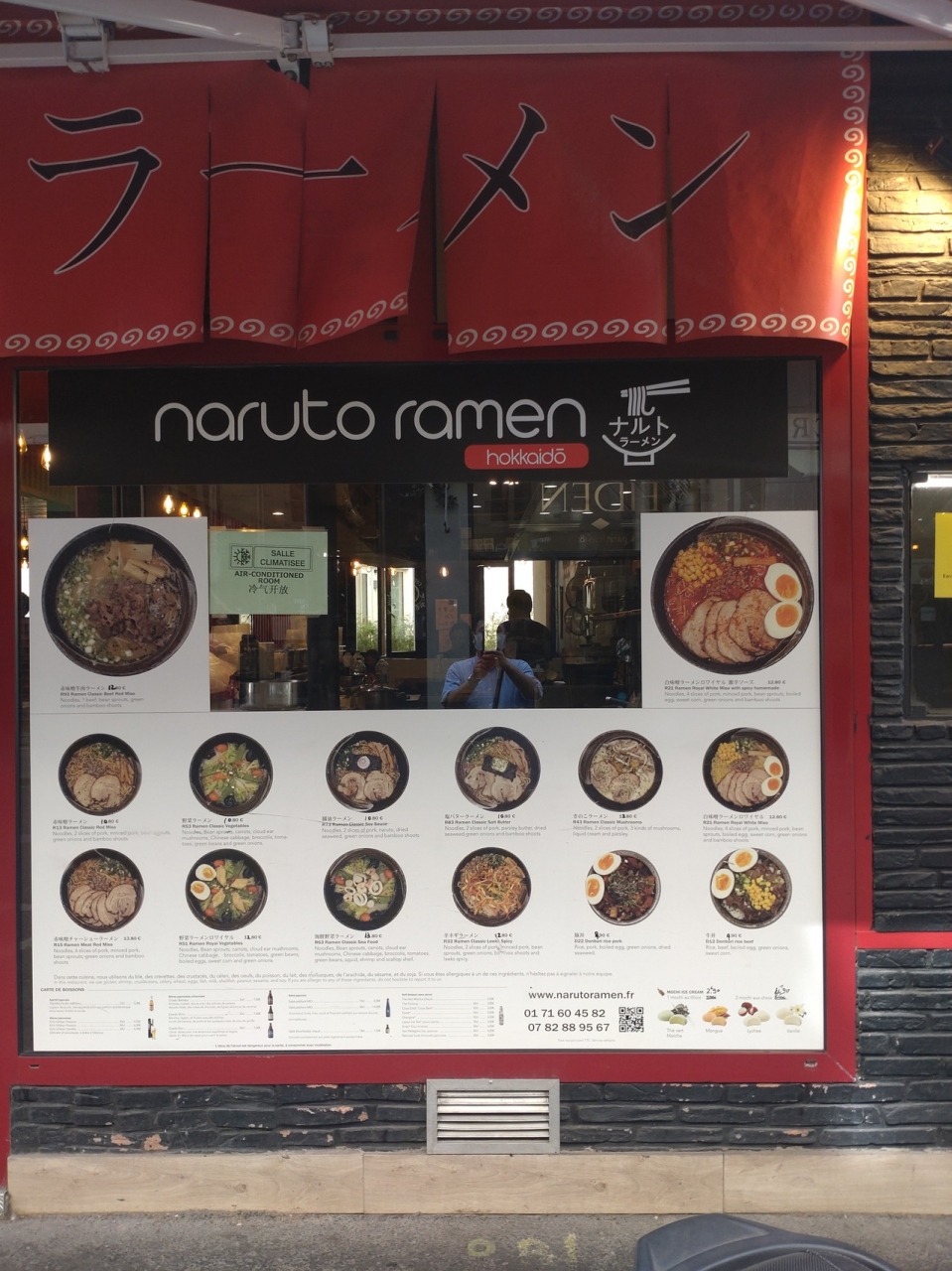 オペラ・ガルニエから徒歩圏内。アジア系の飲食店の多いところにあるラーメン店。「NARUTO」というワードに惹かれて、日本の味が食べられるのでは?と期待して入りましたが、入った瞬間、失敗と悟る。店内にはなぜか宮島の絵が飾ってあるが、それ以外は日本要素なし。店員さんは中国系の方のようで、メニューもなんやらおかしい。「赤味噌牛肉ラーメン」を頼みましたが、スープの色は黄土色、出しの味がしない。牛肉もなんだか怪しく、ごまがかかっている。かつ、スープはかなりぬるめ。麺は茹ですぎ。数口でやめた。美食の国パリで、これだけ残念なラーメンも久しぶり。やっぱり有名店に行けば良かった。