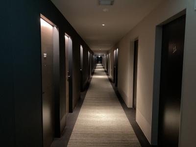 地下鉄七隈線渡辺通駅から徒歩すぐ、西鉄バス渡辺通二丁目バス停からもすぐのところにあるホテル。ホテルモントレグループが経営するホテルモントレ福岡(1階はレクサス)の奥にあり、駐車場などは共有しています。通りからは見えにくいので、初めての方には少しわかりにくいかもしれません。ホテルモントレは、内外装が西洋風の様式をヒントにしたデザインで、こちらは福岡市の姉妹都市であるフランスのボルドーを意識したものとのことですが、外観は素人には一般的ななホテルに映ります。しかし、エントランスを入るとワイン畑のイメージが全開で、インテリアやカラーはなかなかのデザイン。エントランスは小さいものの、その小ささからは想像できない広さのフロントロビーで、対応も悪くありません。