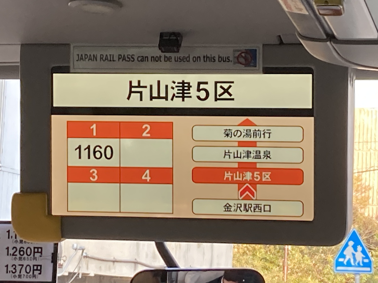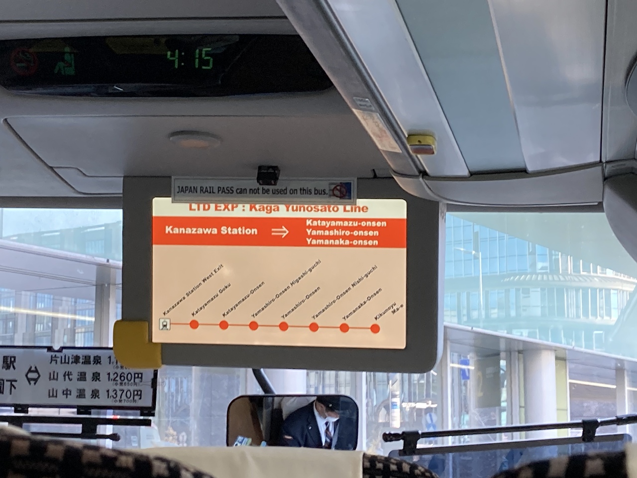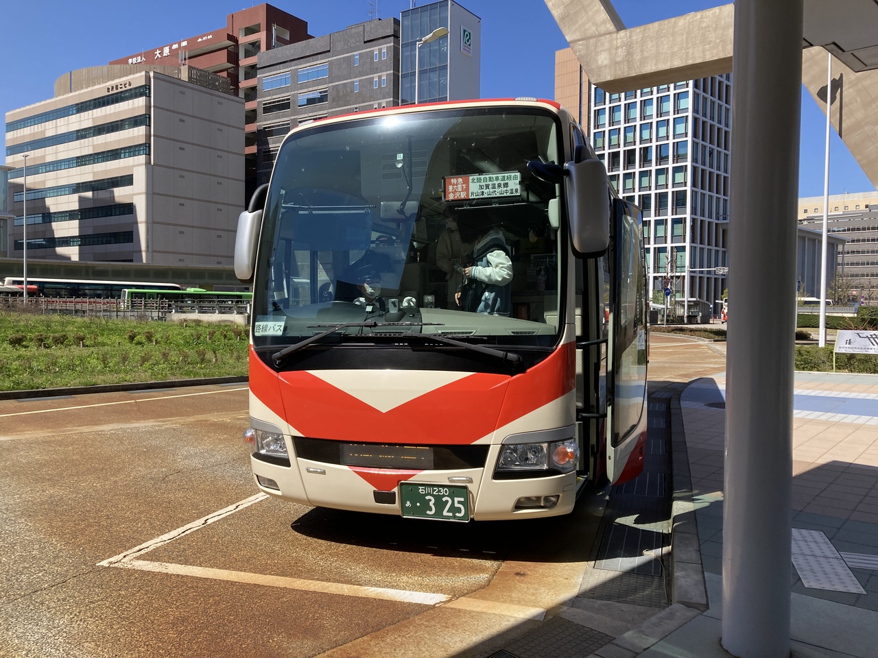 金沢駅西口から金沢の奥座敷とされる加賀温泉郷の片山津温泉、山代温泉、山中温泉を結ぶ高速バス。1日2往復運行されており、金沢駅から片山津温泉まで約45分、山代温泉まで約1時間、山中温泉まで約1時間10分と、電車と送迎バス等を使うよりも速く到着することができる(ただし、停留所からホテル等までは徒歩となるが)。金沢駅発は11時55分、16時15分、山中温泉(菊の湯前)発9時10分発、13時50分発となっており、金沢観光の後の宿泊、ゆったり温泉を楽しむ、どちらにも適応したダイヤで使いやすい。運賃も金沢駅から片山津温泉まで1160円、山代温泉まで1260円、山中温泉まで1370円とリーズナブル。
