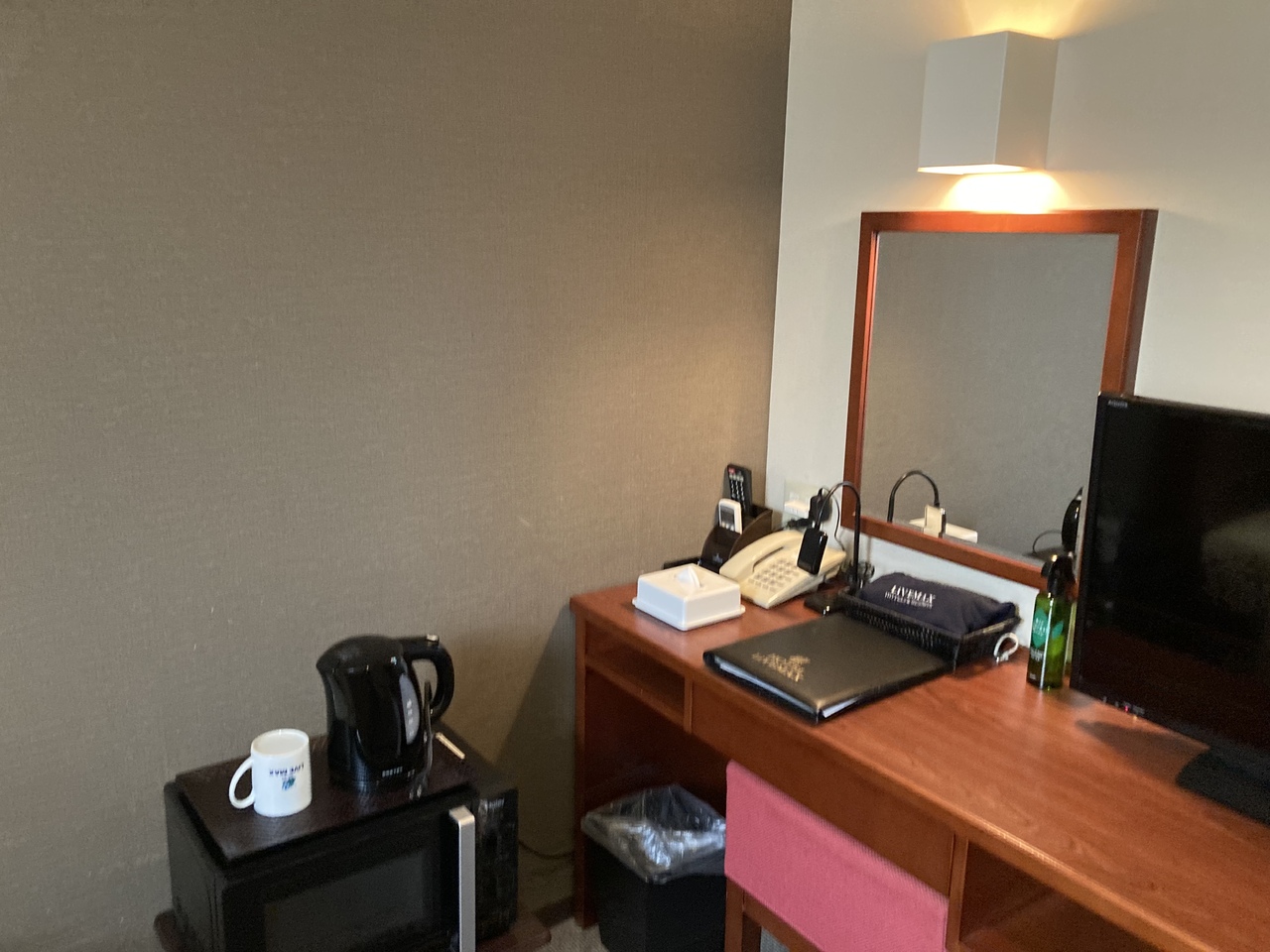 部屋はノーマルな広さですが、かなりくたびれていて、エアコンの汚れもかなり気になりました。また、水回りの高さがかなり高く、バリアフリー対策は完全アウト。連泊の場合は、自分でタオルを含むアメニティをロビーから持っていきます。たまたまコンサートやゴルフ大会が行われていたので、やたら高く一泊16800円とビックリ。さらにヤバいのが、朝8時から昼12時までフロントが不在になること。そもそもチェックアウトが一番多い時間に不在で、何かあったらどうするのだろうと不安になってしまいました。スタッフの対応も人によってまちまちで、夜対応してくれた男性や方はかなり良かったのですが、昼、対応された女性の方は、支払い済みの予約なのに再度、カードを切らされるなど適切な対応ではありませんでした。仕事で泊まらざるを得なかったので利用しましたが、多分、次はないと思いました。- 旅行時期