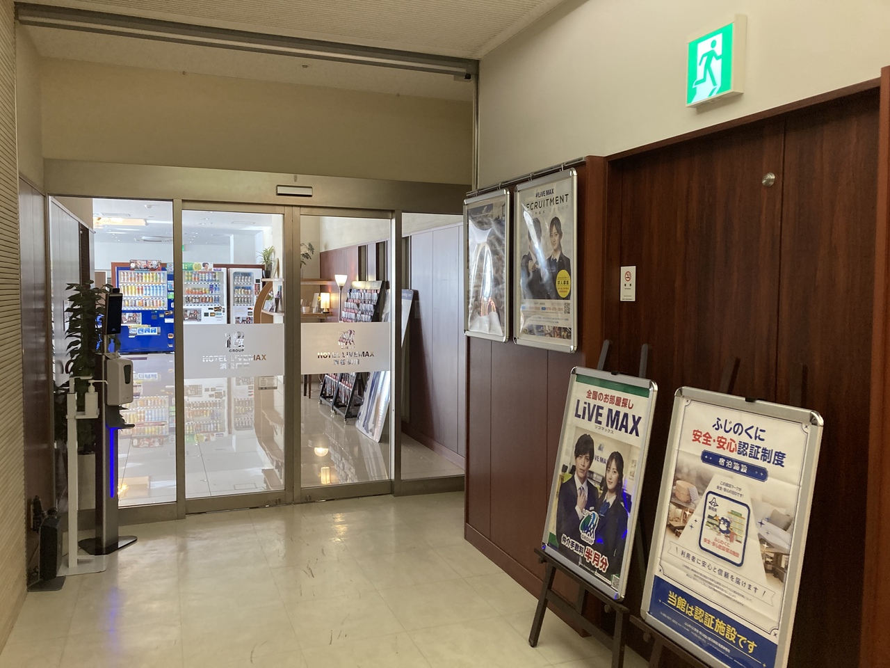JR浜松駅から徒歩5分、遠鉄新浜松駅から徒歩2分くらいのところにあるビジネスホテル。JR浜松駅から徒歩の場合、少しわかりにくく、遠鉄百貨店を突っ切るかたちが近い。2007年にイトーヨーカドーが撤退した後の商業施設である「かじ町プラザ」という1階には場外売場のある雑居ビルの6階のみ、ワンフロアのホテル。イトーヨーカドーの面影が残るエレベーターを降り、自動ドアを入ると雑然とした、というか、整理されていないように見えるロビーと、ロビーの大きさに比べてかなり小さめのフロント。さらに入ると、まるでインターネットカフェのようなイメージ。部屋の前の通路がやたら広い。喫煙所の臭いが漏れていて、真っ黄色。これだけでもテンションが下がる。