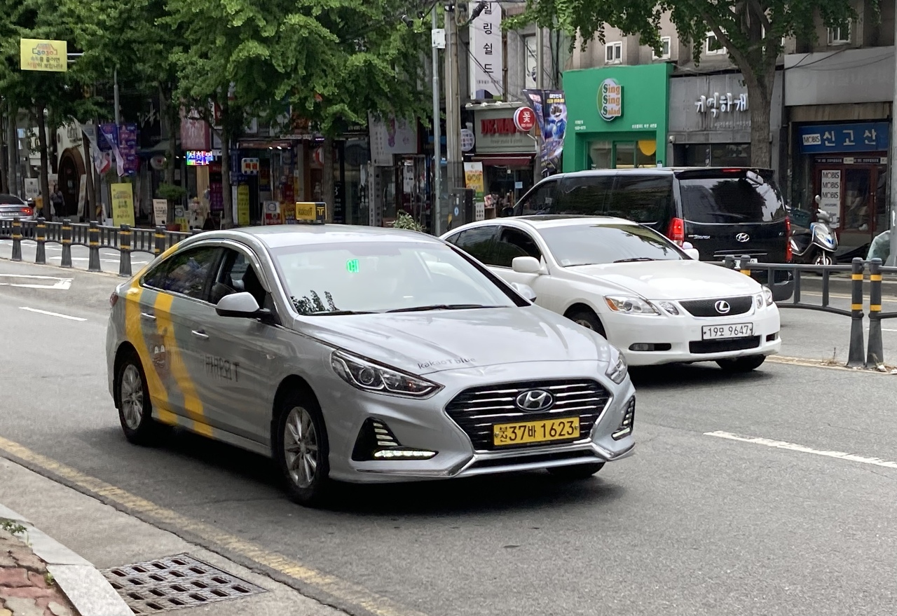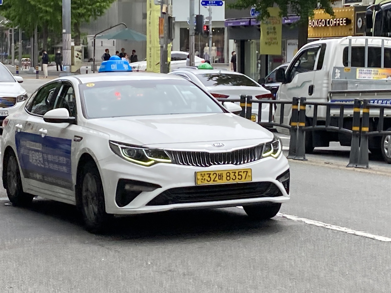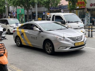 釜山のタクシーは、一般タクシーと模範タクシーと分かれていますが、どちらもメーター制。初乗りは一般が3800₩、模範が6000₩、流しのタクシーもあります。黒い車体の模範タクシーを見ることは少なく、一般タクシーの利用が一般的。一般タクシーはセダンタイプが多いものの、最近はワゴンタイプも増えています。オレンジ、シルバーの車体はタクシー会社のタクシーで、それ以外は個人タクシー。車体にオレンジ色のラインと屋根にオレンジ色の行灯をつけたタクシーは、安全やサービスの基準を満たしたものでオススメ(とはいえなかなか選べませんが)。