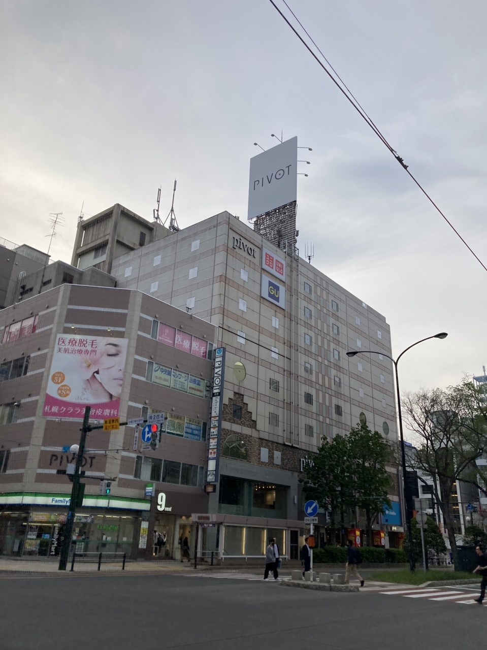 西4丁目と狸小路の間にある商業施設。36号線沿いにあり、地下ではポールタウンと直結(ただし、上り下りがある)。昔をたどると1968年開業の「中心街デパート」で、1973年にダイエーとなるが1993年に閉店。その後、ファッションビルとなりました。7、8階のユニクロ、札幌一の広さを誇るGUが核店舗ですが、古着店やダイソー、サンキューマート等、おむかえのパルコにはないようなお店も多数入っていて、客層は若め。古い建物なので、天井が低く、やや窮屈感があるが、ふらっと寄るには楽しいお店でもあった。2019年からビルの所有者が、ダイビルになり周辺のビルとともに再開発するため、2023年5月16日をもって閉店。移転ではなく新規開店とのことですが、現在、IKEUCHI ZONEの入っていた南1西2のビルに、6月8日から「ピヴォクロス」として再オープンの予定。お隣の4丁目プラザに続く閉店、モユクサッポロの開業など、中心部のお店が大きく変わる時期なのかもしれません。